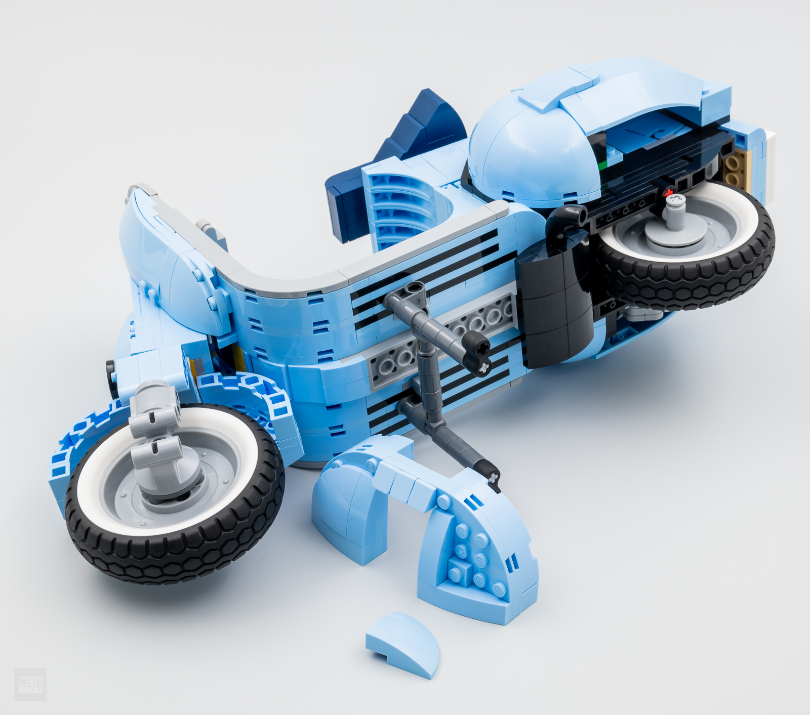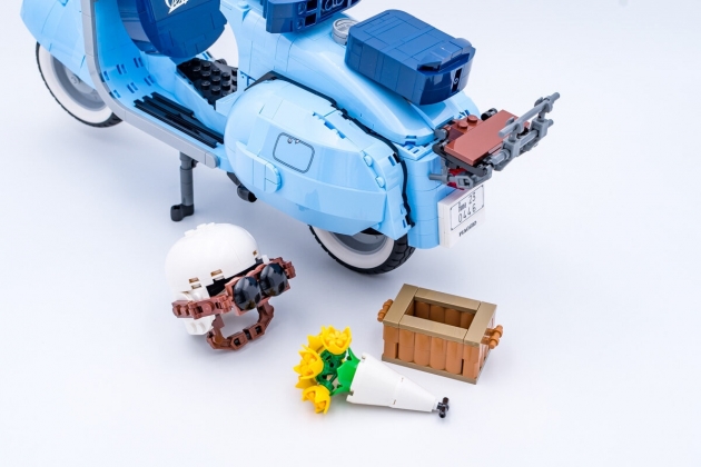 Apresentada em azul pastel, uma das cores de produção originais da Vespa e uma cor LEGO extremamente rara concebida para apelar aos fãs do modelo, a moto tem ainda detalhes que fazem a diferença, como o logótipo da Vespa, uma matrícula clássica italiana dos anos 60, uma roda sobresselente, um capacete, além de um cesto acessório incluindo um ramo de flores na traseira.