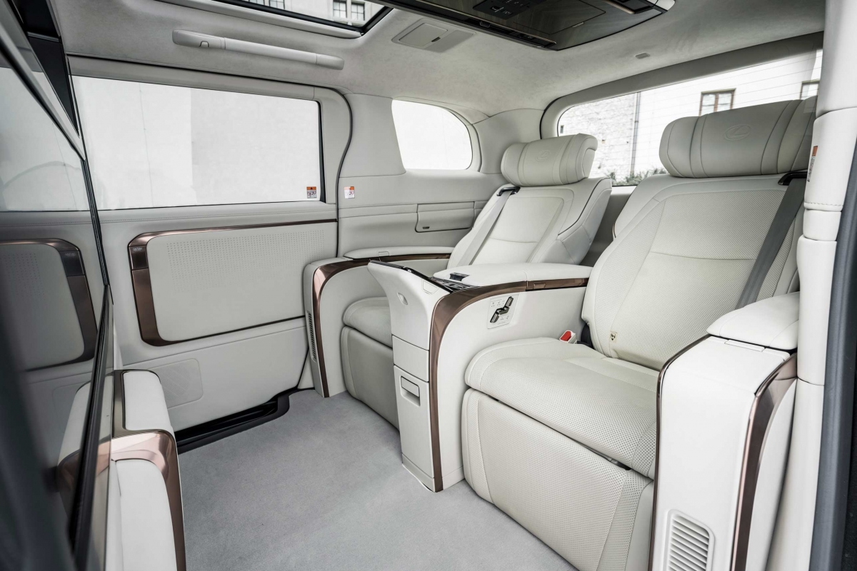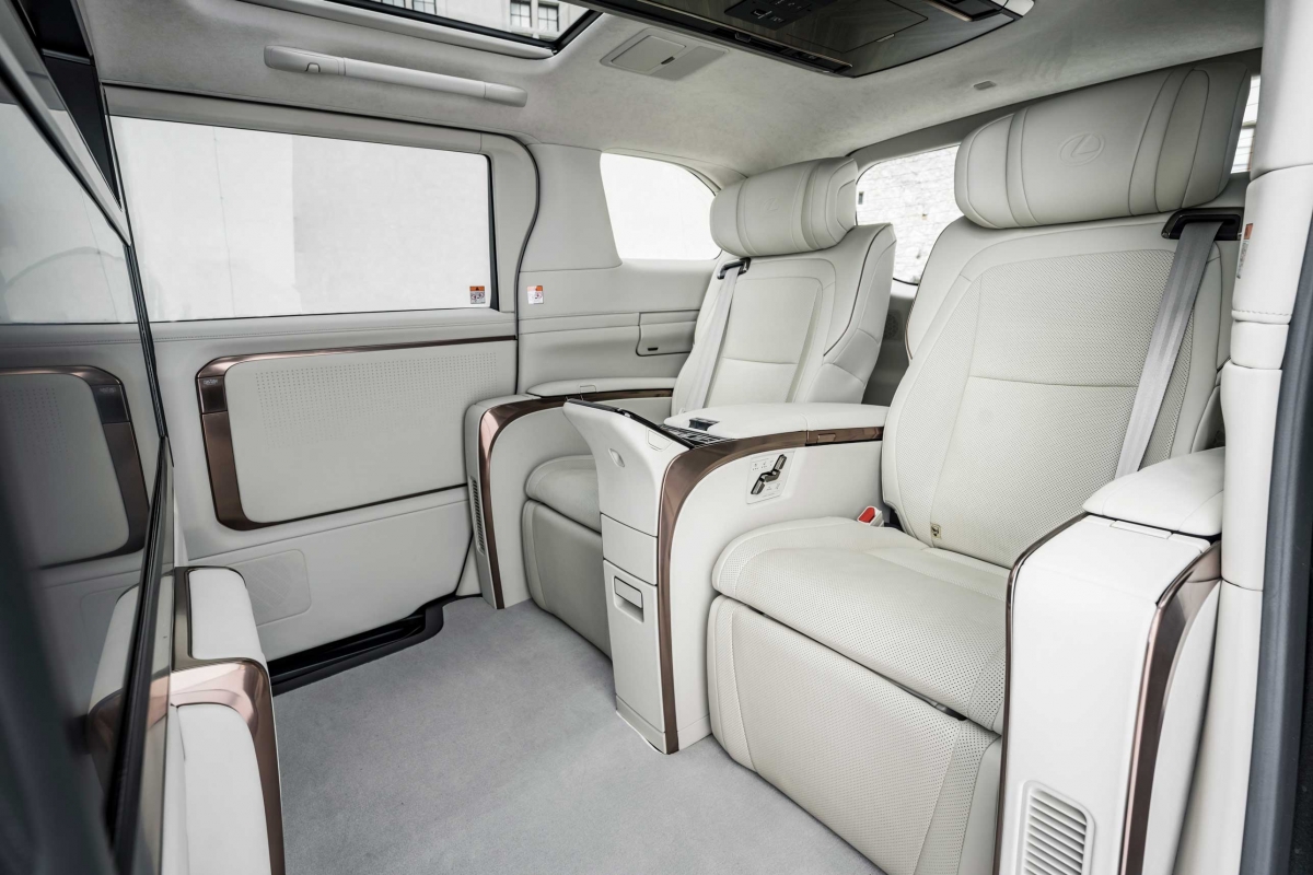 Apesar do excelente trabalho que a Lexus fez para dotar o LM com a experiência de condução e todas as tecnologias que é possível encontrar nos seus automóveis, os melhores lugares são os da fila de trás. Existem duas versões do LM que diferem entre si sobretudo pelo número de lugares: sete ou apenas quatro, em que na segunda opção tem também uma divisória física em vidro. Esta pode ser escurecida com o simples toque de um botão num dos dois controlos remotos disponíveis semelhantes a um smartphone, garantindo privacidade total a quem vai nos lugares traseiros.