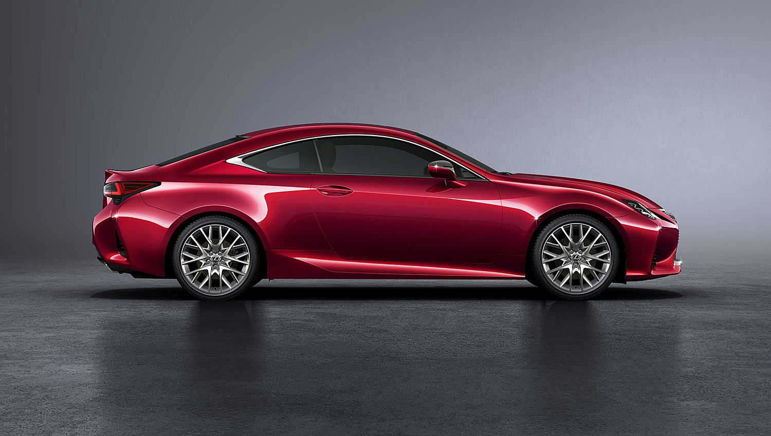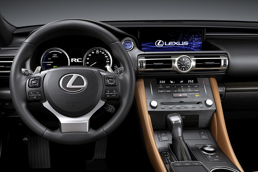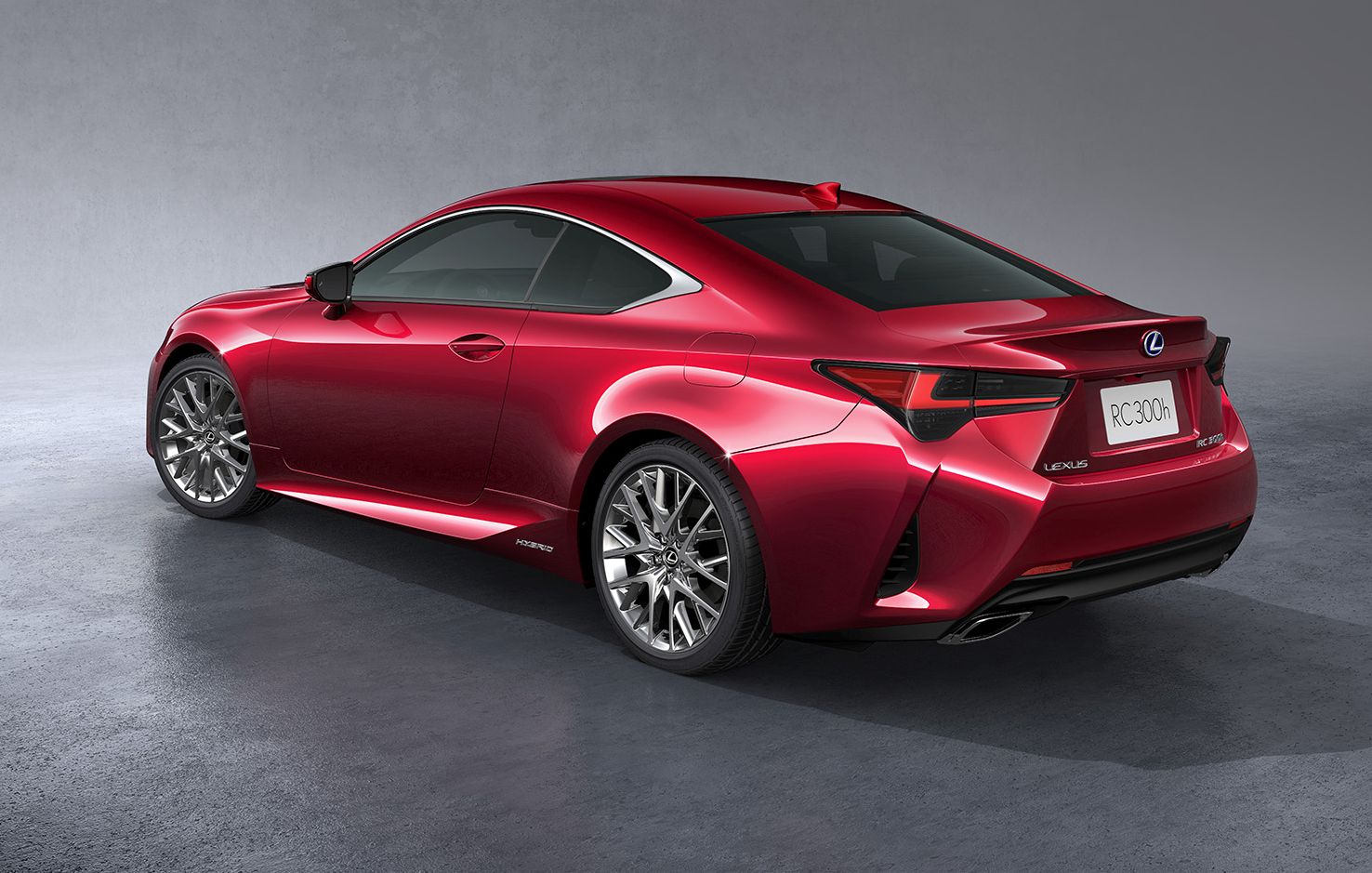 Foram também adicionadas condutas de ar ao canto do para-choques traseiro, para melhorar a estabilidade e criar uma sensação de maior largura e de baixo centro de gravidade. Existem 11 cores disponíveis para o exterior do RC, incluindo Amarelo Solar e Azul Celeste. Por outro lado, o novo RC F Sport apresenta o mesmo padrão em malha da grelha frontal que está presente em todos os modelos F Sport, juntamente com outras características personalizadas de interior e exterior, como são os casos das jantes de 19 polegadas que preenchem de forma melhorada as cavas das rodas e que são inspiradas pelos modelos topo de gama LS e LC.