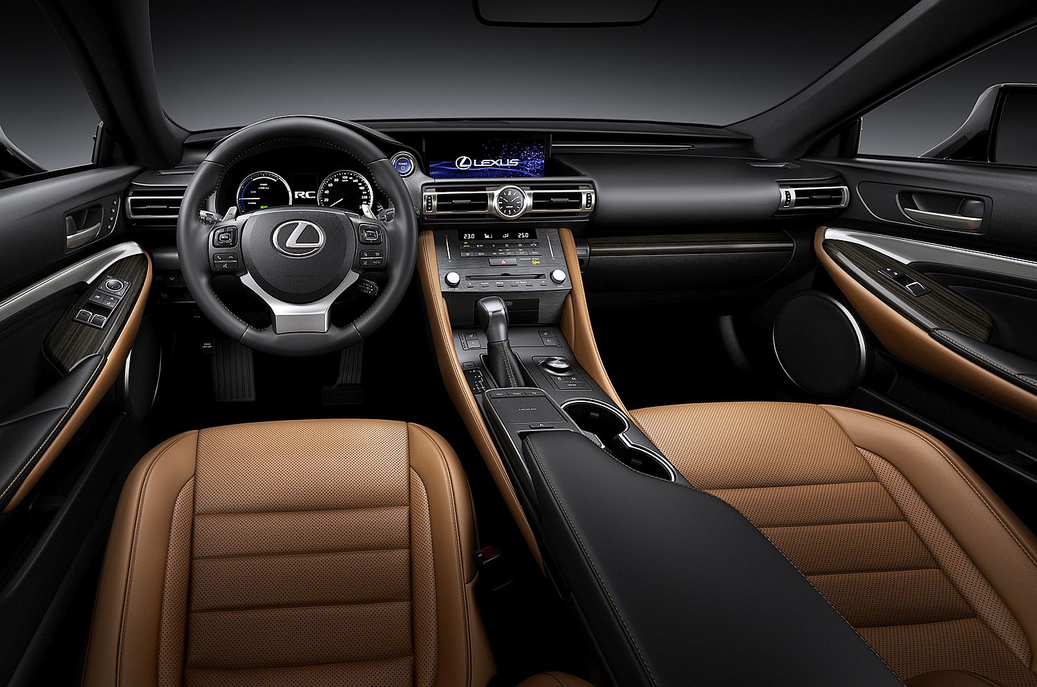 A bordo, aplicou-se acabamento escovado aos painéis de controlo de aquecimento e áudio, criando uma maior sensação de qualidade, enquanto as almofadas para os joelho de cada lado da consola central foram aumentadas e colocadas mais acima. No painel de instrumentos pode ver-se um novo relógio analógico, idêntico ao que se encontra no modelo LC, estando disponíveis novos acabamentos interiores, incluindo o “Naguri” em alumínio verdadeiro e “Brushed Metal” para o modelo RC F Sport, perfazendo um total de cinco opções.Condução “mais precisa”