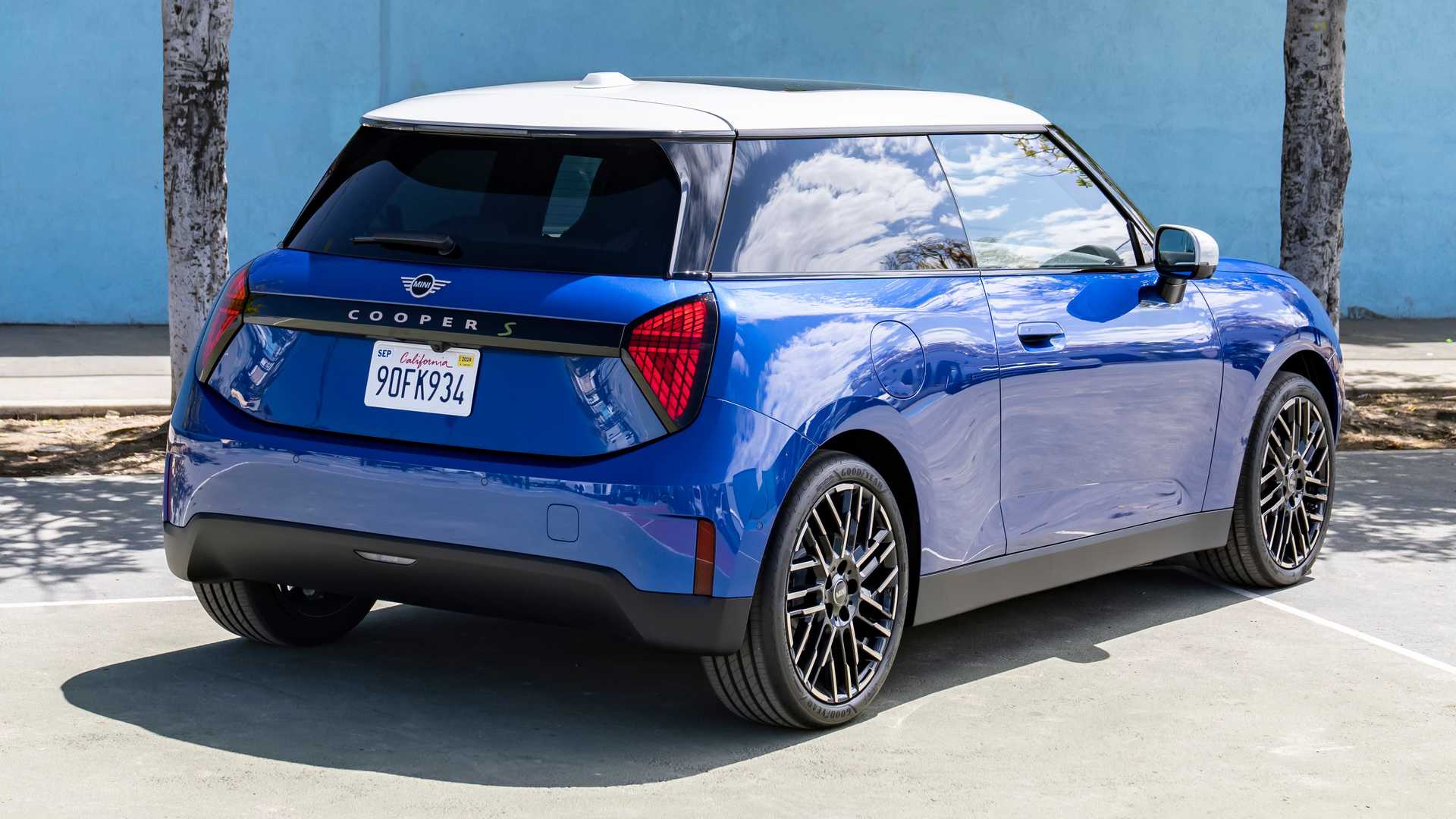 Os farolins passam a assumir um formato trapezoidal com padrão no interior e existe uma barra preta atravessa todo o portão da mala. Já presença de um “S” na cor verde indica que se trata, exatamente, da versão Cooper S Electric.