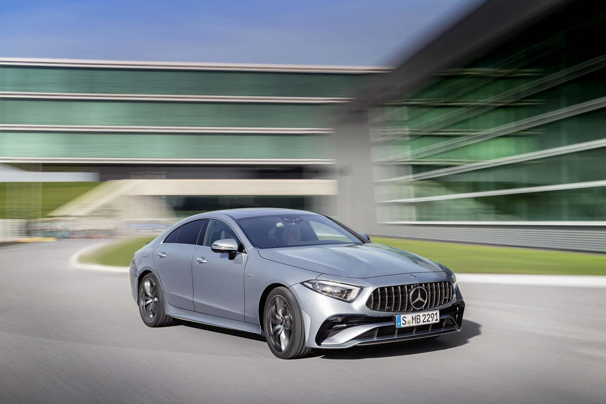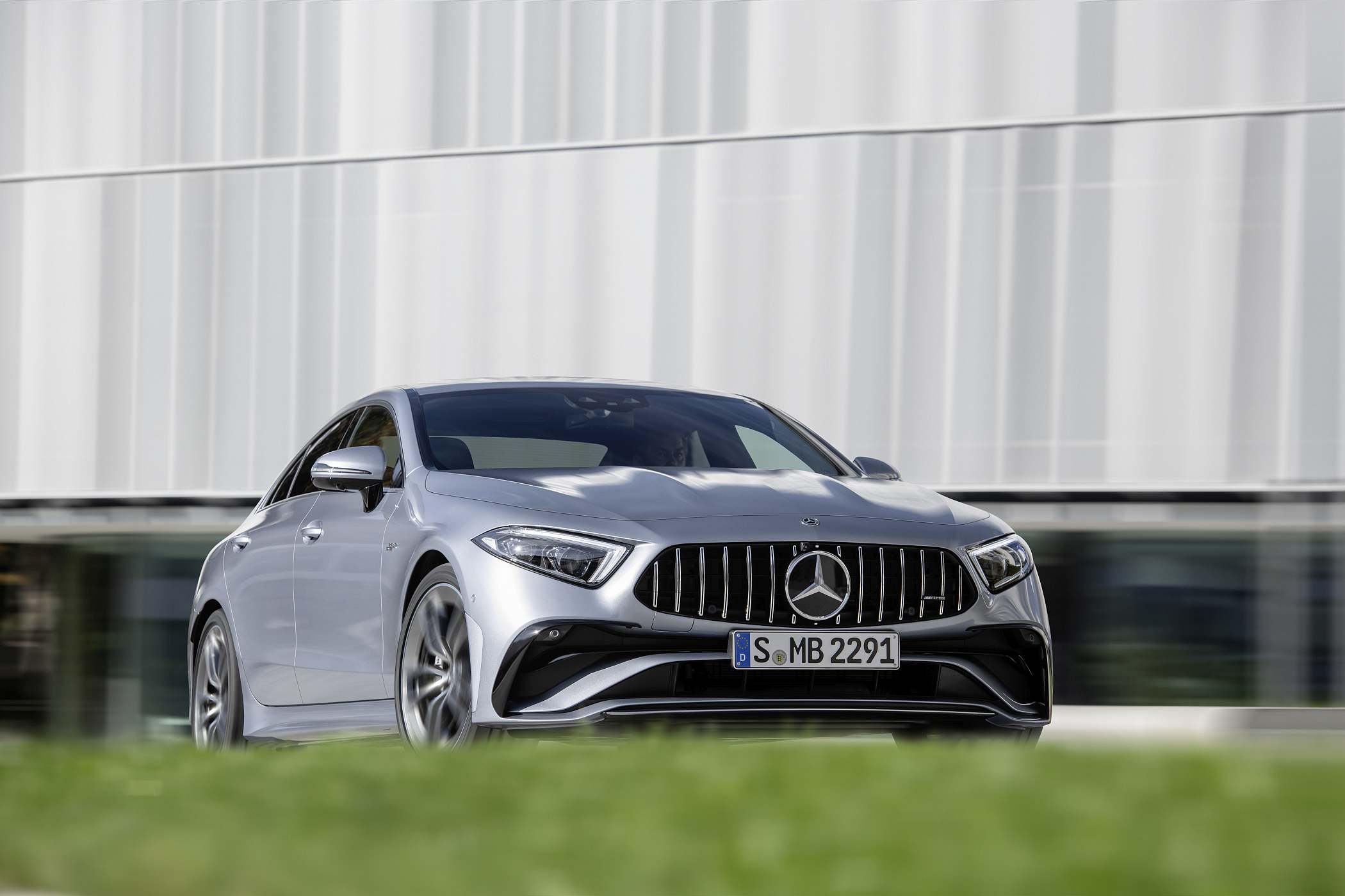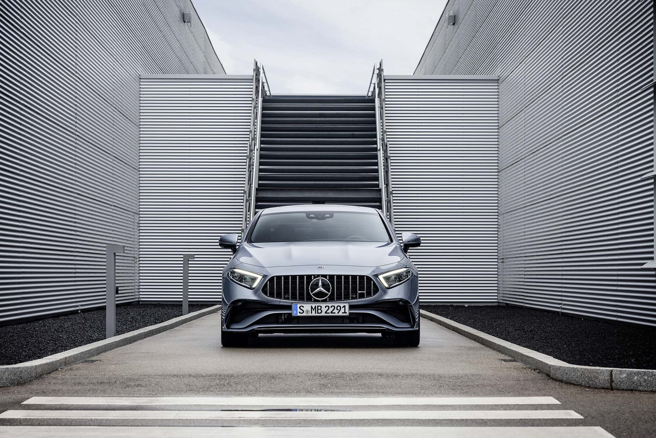 A Mercedes-AMG aproveita esta atualização de meio de ciclo para atualizar o modelo desportivo CLS 53 4MATIC+, introduzindo uma frente redesenhada com o para-choques AMG desportivo em forma de ‘A’, bem como a grelha exclusiva AMG com barras verticais. Os retrovisores externos são pintados na cor do veículo. Por dentro, o novo volante também está disponível, aqui com acabamento em couro napa e com os familiares botões AMG no volante. Em termos de opcionais, dois novos packs permitem que o coupé seja ainda mais desportivo: o Pack Night II AMG, disponível em combinação com o Pack Night AMG, inclui a grelha do radiador desportiva e ‘lettering’ cromado escurecido.