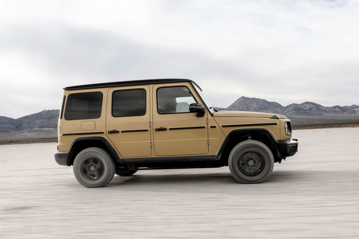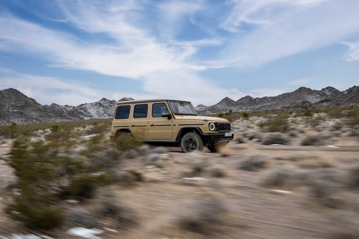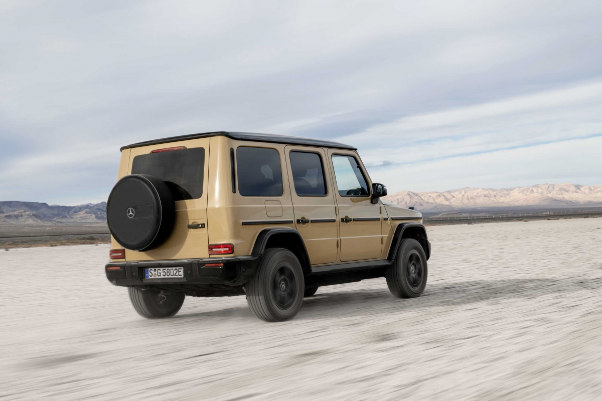 O novo Classe G elétrico traz as qualidades todo-o-terreno do Classe G para a era da mobilidade elétrica. Em alguns aspetos, a versão elétrica supera mesmo os modelos com motor de combustão – por exemplo, na altura de passagem a vau. O chassis de longarinas foi modificado e reforçado para o modelo elétrico, mantendo a combinação de suspensão dianteira independente de duplo triângulo e eixo traseiro rígido. O eixo traseiro é um projeto da De Dion e foi completamente redesenhado. Os motores elétricos são fixados ao chassis de longarinas e ligados às rodas através de semieixos com duas juntas universais. A vantagem deste sistema é que o ângulo de sopé não se altera durante a compressão. Os semieixos de duas juntas universais transmitem a propulsão e incorporam juntas deslizantes para igualar o comprimento. As seguintes características de todo-o-terreno falam por si: