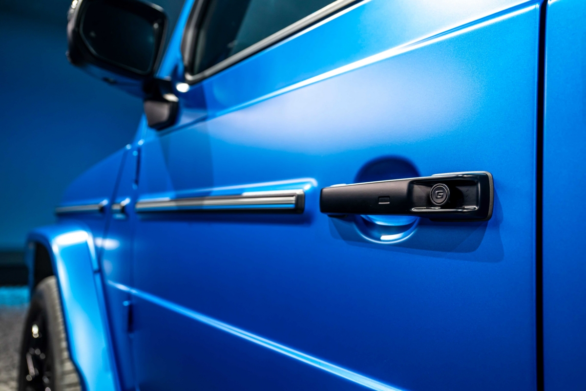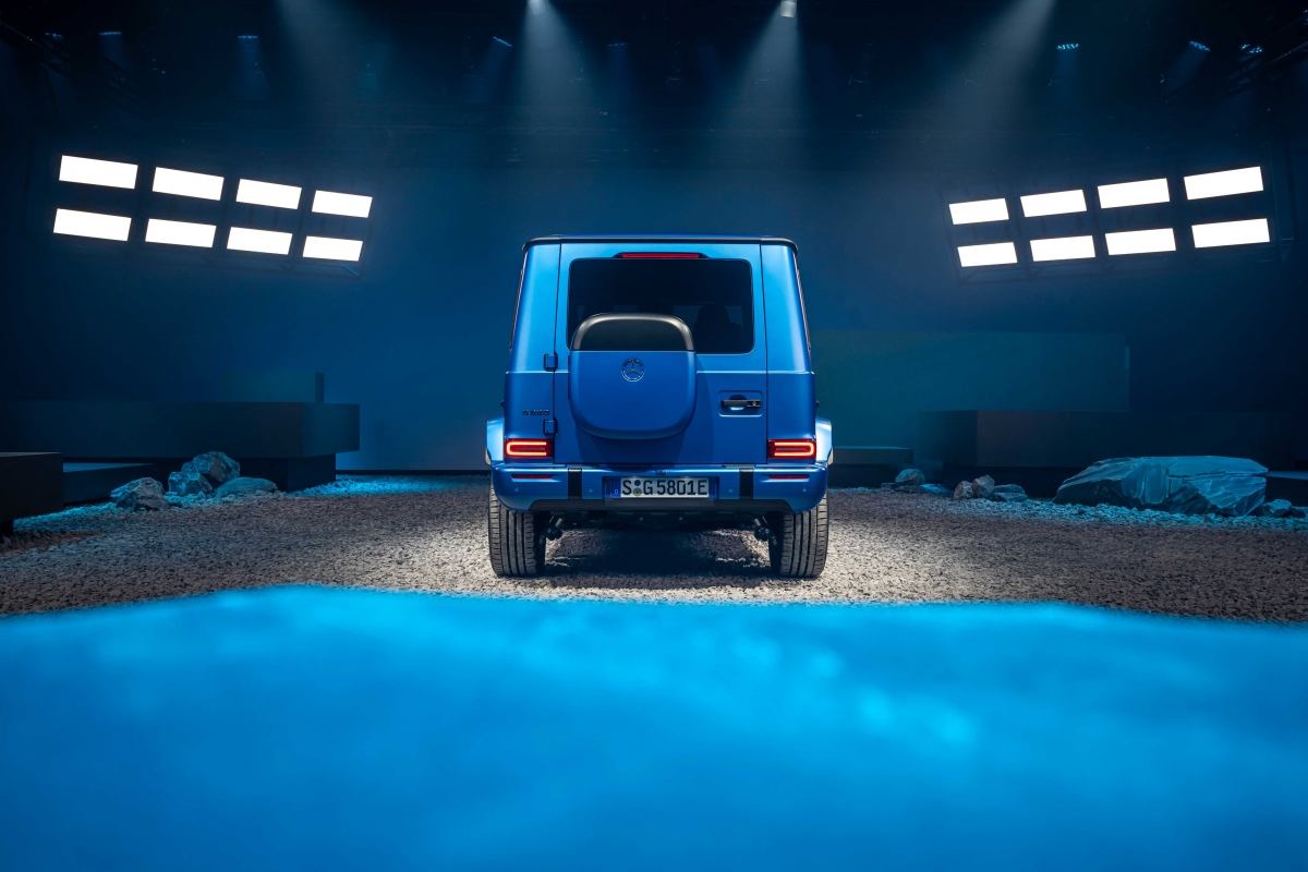 O novo Classe G elétrico é imediatamente reconhecido como membro da família de modelos da Mercedes-Benz. O exterior ganha um aspeto elétrico marcante com uma grelha frontal opcional com painel preto. Uma série de características distintivas distinguem a variante totalmente elétrica dos modelos com propulsão convencional. Estas incluem um capot ligeiramente elevado e as designadas entradas de ar nas extensões dos guarda-lamas traseiros, bem como a caixa de design na traseira. Em combinação com o novo revestimento do pilar A e um spoiler no tejadilho, contribuem para uma melhor aerodinâmica.