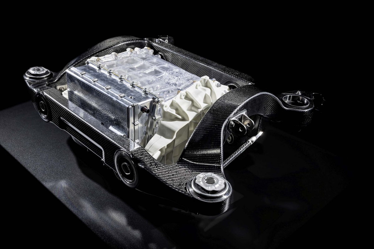 A bateria de tração usada neste Vision EQXX tem uma capacidade próxima dos 100 kWh, mas com um volume reduzido em 50% e um peso inferior em 30% em relação à da berlina de luxo que se encontra à venda no mercado – o seu peso é de apenas 495 kg.