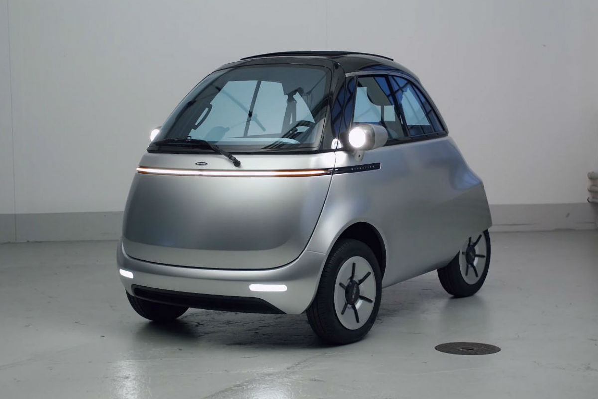 O Microlino 2.0, com uma porta na dianteira como no clássico das décadas de 50 e 60 e anunciado como “a combinação ideal entre uma motocicleta e um automóvel”, com a empresa a garantir que no seu interior existe espaço suficiente para “dois adultos e três grades de cerveja”.