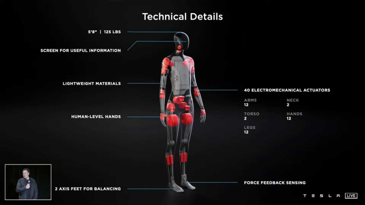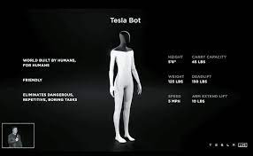 O primeiro Tesla com duas pernas para andarApresentado pela primeira vez em agosto de 2021, o primeiro Tesla com pernas para andar vai ter um ecrã no lugar do rosto onde serão projetadas todas as informações úteis e mais revelantes. Terá a figura de um humano de estatura média, com uma altura de 1,76m e 57kg de peso, sendo capaz de transportar volumes até 20kg.