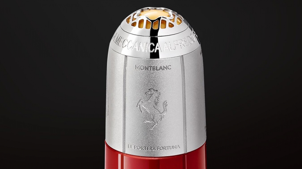 Este mesmo emblema em ouro adorna um mecanismo especial que permite ver o interior da caneta, onde pode ver-se um Cavallino Rampante a girar para fazer movimentar a tinta, como se estivéssemos a encher o depósito da viatura para colocar em marcha o seu potente motor.