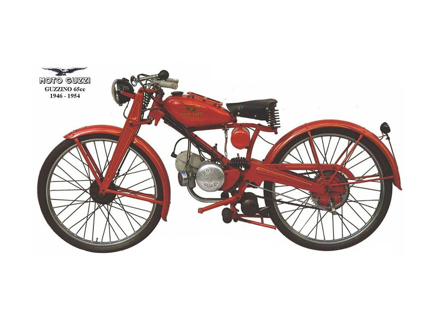 Um bom exemplo foi o lançamento da Guzzino 65. Lançada logo após o fim da guerra, na primavera de 1946, e comercializada durante quase 10 anos, ajudou muito ao sucesso da marca e à mobilidade das pessoas em Itália e não só. Era leve (com apenas 45 kg), fiável e foi um sucesso tremendo na europa durante mais de uma década. Um verdadeiro best-seller e vendido a um preço low-cost! Foram produzidas, no total, mais de 71.000 unidades!