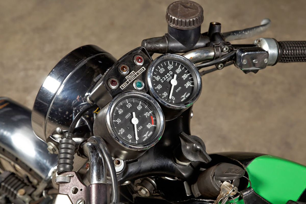 Claro que, em potência pura, não podia fazer frente a uma poderosa CB 750 Four e, menos ainda, a uma Kawasaki Z 900. Porém, a curvar e em estradas mais sinuosas a situação altera-se bastante! Afinal de contas, a Moto Guzzi já produzia motos e estava envolvida na competição bem antes destas suas concorrentes e sabia bem o que andava a fazer!