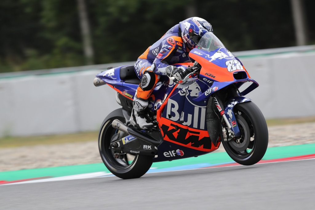 Miguel Oliveira (KTM Tech3 3) vai partir do 16° lugar para a corrida do MotoGP em Brno, na República Checa, depois de não ter conseguido dar seguimento às boas prestações dos treinos livres disputados com o piso muito molhado. Marc Márquez (Repsol Honda) vai partir da pole position com uma performance brilhante que deixou o segundo melhor a 2,5 segundos.