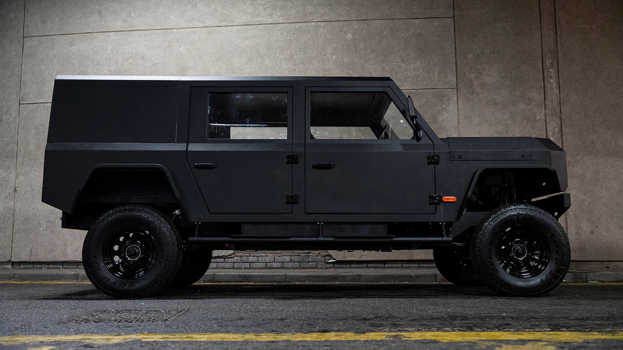 A construção também é a prova de maus tratos em todo o tipo de pisos. A jovem empresa estima a sua durabilidade em 50 anos, cumprindo-se rigorosamente o programa de manutenção e serviço na marca. Na conceção, chassis de longarinas à antiga e aço de 5 mm de espessura (são de 1,5 mm os painéis usados normalmente na indústria), além de todas as credenciais excecionais para a condução em fora de estrada: amplos ângulos de ataque (84º) e de saída (51º), 480 mm de altura ao solo e 800 mm de passagem em vau.