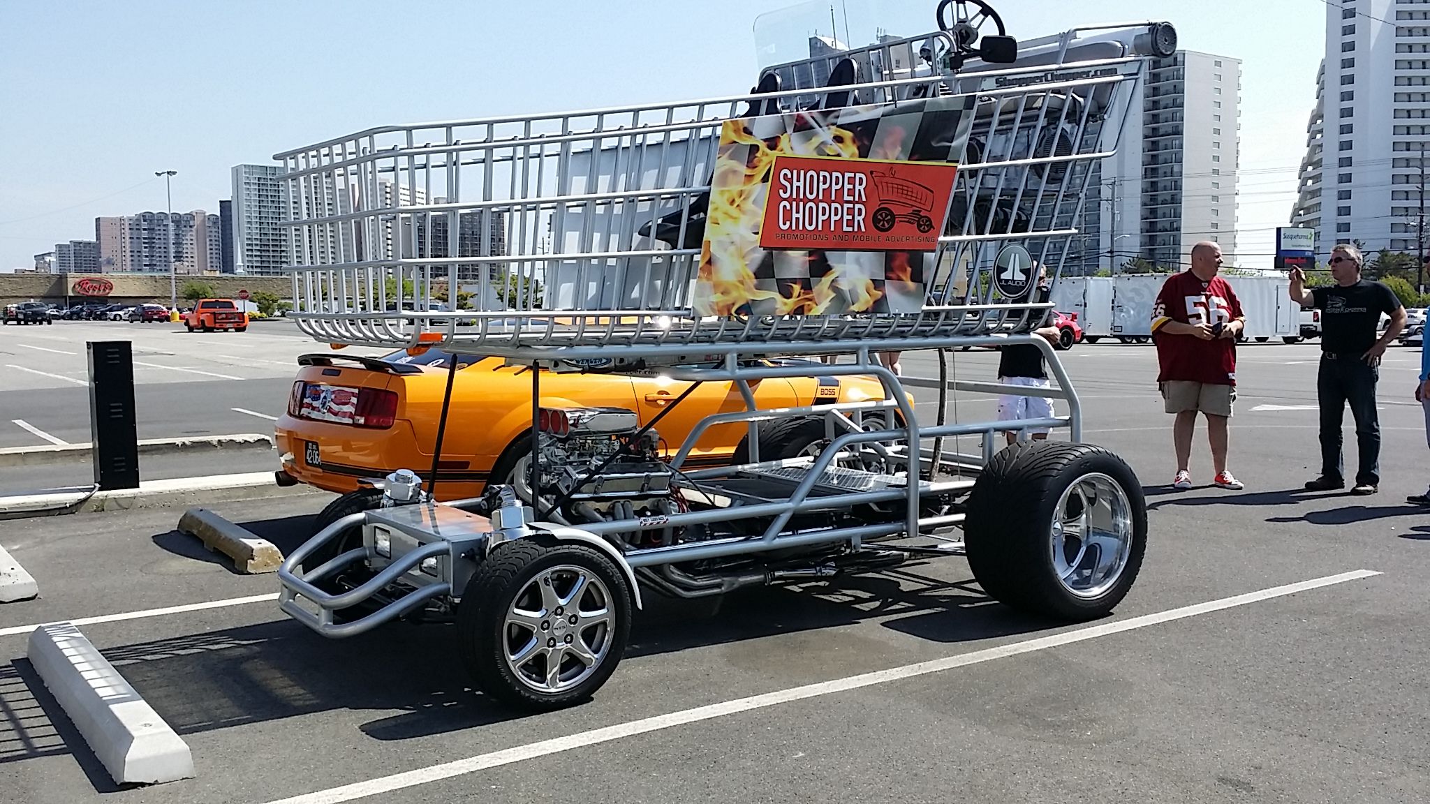 O termo ‘carrinho de supermercado’ talvez não seja o mais adequado para definir o que aqui vemos. Desde logo, porque o diminutivo não combina com o porte muito avantajado deste veículo, com 3,12 metros de comprimento e 2,34 metros em altura. E, também, porque não foi propriamente pensado para se empurrar nos corredores das grandes superfícies com as compras da semana no interior. Ao contrário, o estranho Shopper Chopper é ‘puxado’ por 340 CV, extraídos de um velhinho motor Chevrolet 350 Edelbrock, com três enormes tomadas de ar para o carburador.
