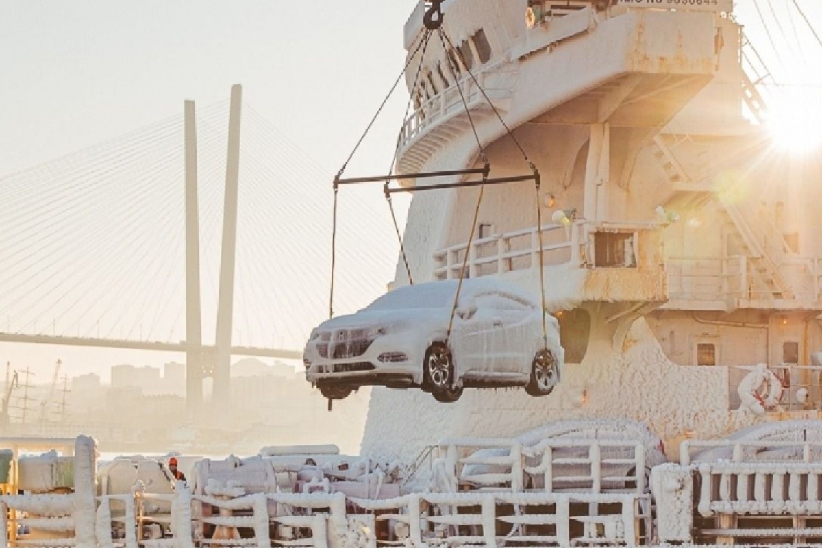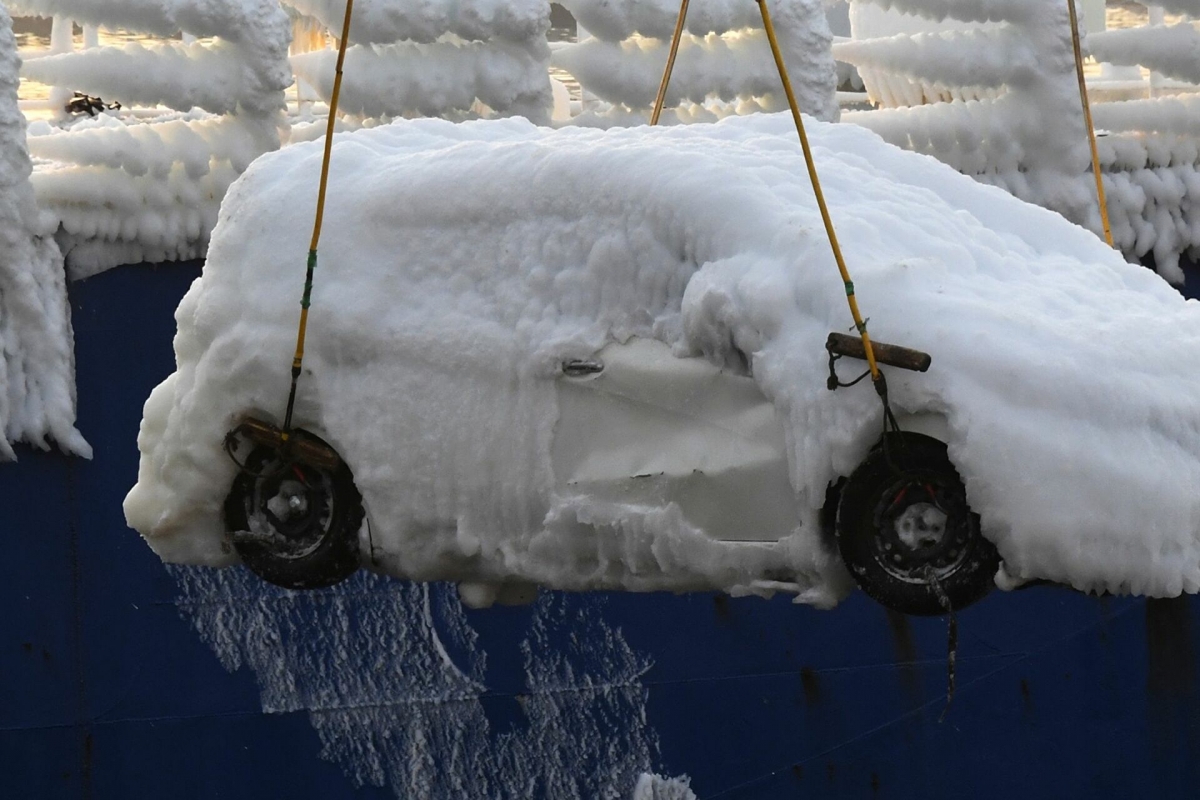 Aconteceu na Rússia, porque o cargueiro japonês “Sun Rio”, que partiu da Coreia do Sul enfrentou temperaturas invulgarmente baixas a caminho do porto de Vladivostok , onde chegaram automóveis cobertos de um manto com mais de doze centímetros de gelo.