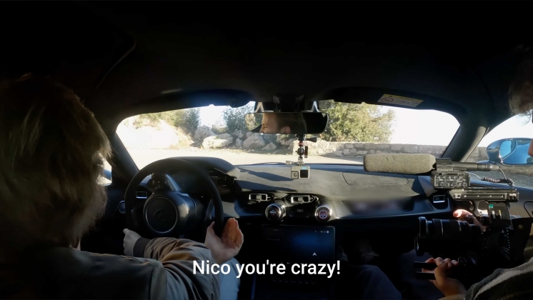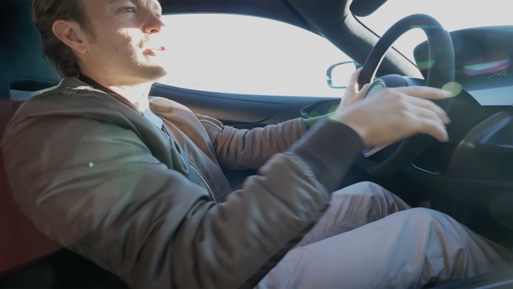 Depois de uma explicação detalhada das funcionalidades do carro, em que se destacam um seletor para os modos de condução, e outro para a potência atribuída a cada eixo, para além de poderem ser personalizadas as definições da direção e da aerodinâmica. Nico faz-se à estrada e depois de testar o “launch control” dos 0 aos 100 km/h, e ficou rendido com o comportamento do carro: “tem uma condução incrível, a rapidez é de doidos!, tem tanta aderência que faz tudo o que eu quero” ou “a travagem é soberda!”, foi como Nico Rosberg descreveu o Nevera.