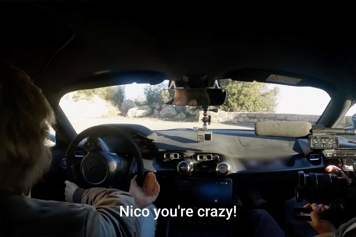 Depois de uma explicação detalhada das funcionalidades do carro, em que se destacam um seletor para os modos de condução, e outro para a potência atribuída a cada eixo, para além de poderem ser personalizadas as definições da direção e da aerodinâmica. Nico faz-se à estrada e depois de testar o “launch control” dos 0 aos 100 km/h, e ficou rendido com o comportamento do carro: “tem uma condução incrível, a rapidez é de doidos!, tem tanta aderência que faz tudo o que eu quero” ou “a travagem é soberda!”, foi como Nico Rosberg descreveu o Nevera.