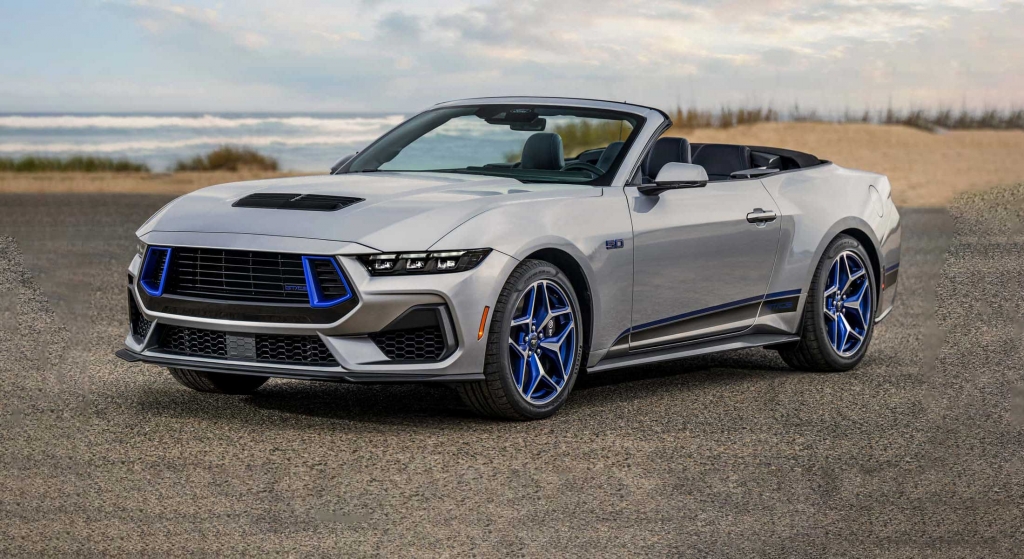 Construído com base no GT (motor de 480 CV e 562 Nm ou 486 e 567 Nm com escape desportivo), o California Special conta com elementos estilísticos inspirados no modelo de há 56 anos. Surge pintado com detalhes em Rave Blue nas entradas de ar que ladeiam a grelha redesenhada e inclui filamentos horizontais em vez do tradicional padrão em favo de mel. Para este modelo especial, a Ford optou ainda por escurecer os faróis e aplicou detalhes em Rave Blue nos logótipos de todo o carro.