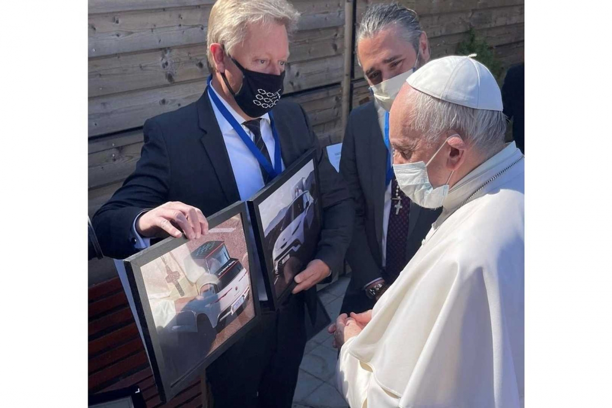 O Papa Francisco, pouco adepto de luxos e ostentação (usou um modesto Fiat 500L, em 2015, na visita que fez aos EUA; mais recentemente, recebeu da Dacia um Duster), assinou a proposta apresentada por Henrik Fisker e Geeta Gupta-Fisker, fundadores da promissora marca de elétricos da Califórnia, nos EUA.