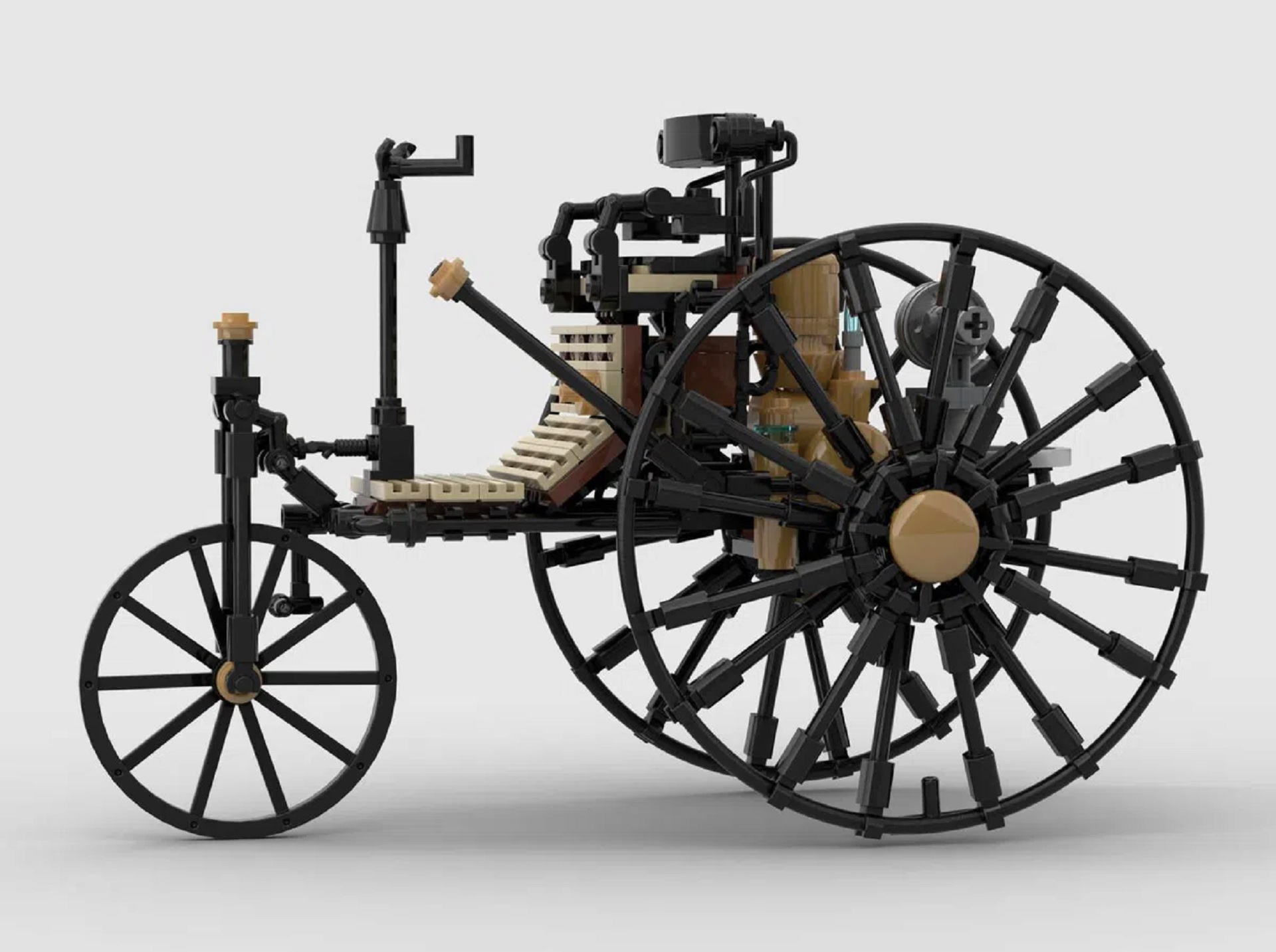 Na configuração especial de três rodas, o Benz foi pensado para se assumir como alternativa mais prática e versátil ao transporte de tração animal com um pequeno motor de combustão interna, em vez dos cavalos de quatro patas.