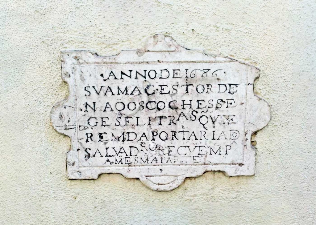O sinal de trânsito é na verdade uma placa que se encontra na parede de um edifício em Alfama, na Rua do Salvador. É a única que resta de 24 mandadas afixar pelo rei D. Pedro II e diz: “Anno 1686. Sua Majestade ordena que os coches, seges (carruagem antiga, com duas rodas e um só assento), e liteiras que vierem da portaria (início da rua) do Salvador que recuem para a mesma parte”.