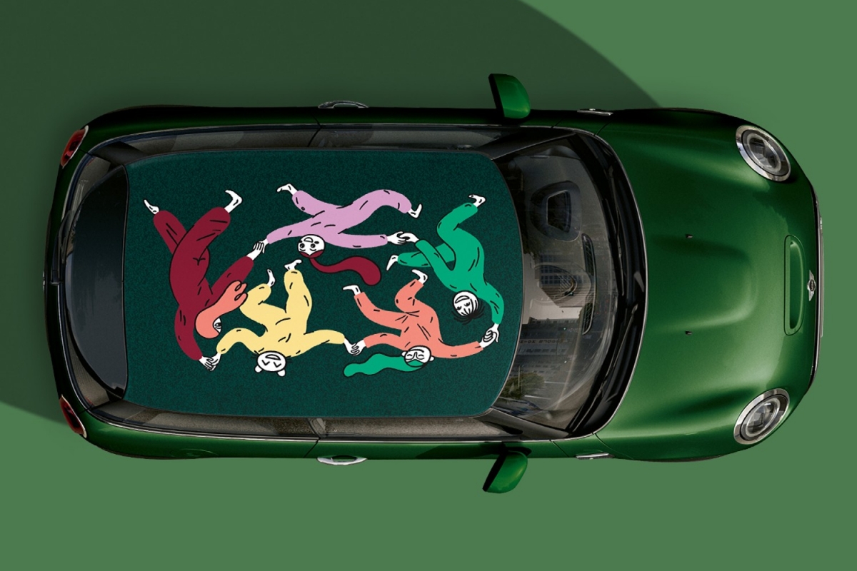 Quatro artistas nacionais criaram tejadilhos exclusivos para o Mini Cooper SE, em série limitadas a 25 peças por autor, num total de 100 unidades, disponíveis para modelos novos ou usados.