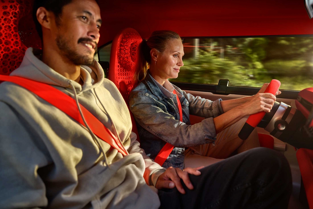 De entre uma série de componentes, o tejadilho é fruto de uma parceria com o fabricante de plásticos BASF, e consiste numa estrutura alveolar de cartão prensado reforçada com fibra de vidro, pesa apenas 6 kg e pode suportar o peso de um adulto. Nas portas, a eliminação dos altifalantes, do forro, e do mecanismo elétrico para os vidros permitiu poupar 7 kg. A inovação continua no interior, onde os bancos são feitos com uma estrutura tubular e os apoios impressos em 3-D, utilizando apenas 8 elementos, ao contrário dos típicos 37 utilizados num banco normal.