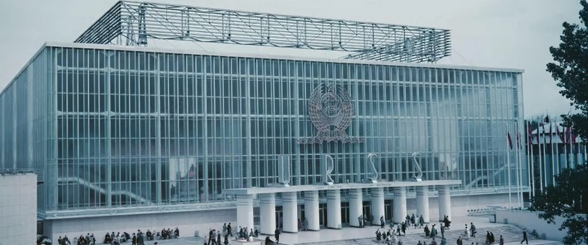 Dos 39 países participantes a URSS destacou-se pelos conteúdos e grandiosidade do seu pavilhão, um edifício com uma escadaria monumental de acesso, cujos materiais predominantes eram o vidro e o betão. A demonstração de força dos soviéticos não se ficava por aí, e se por um lado se apoiaram numa visão política e histórica, cujo maior exemplo era a enorme estátua de Lenine que dominava o pavilhão, por outro expuseram em força a capacidade tecnológica e industrial do enorme estado socialista. Estavam presentes modelos à escala real do satélite Sputnik e de outros módulos espaciais, ou um modelo do primeiro navio quebra gelo movido a energia nuclear, mas também bens de consumo como os automóveis.