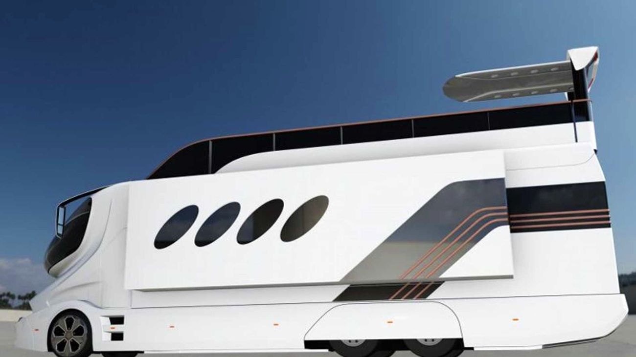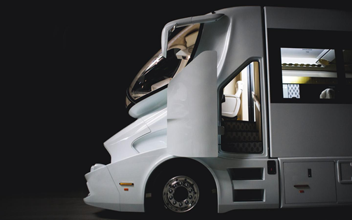 Entre os elementos exclusivos, o construtor destaca os materiais nobres usados na conceção da estilizada carroçaria, com vários componentes em fibra de carbono de alto rendimento. O estilo é também inspirado nos automóveis desportivos, com jantes de 36 polegadas igualmente muito vistosas. Ainda de acordo com o fabricante, a estrutura é incrivelmente robusta, com uma espessura de parede superior a 60 mm, proporcionando extraordinária estabilidade e um índice de isolamento comparável ao de uma berlina de luxo. Tudo isso sem sacrificar as linhas de design futuristas, com janelas integradas e acabamentos cromados finos que incluem iluminação indireta.