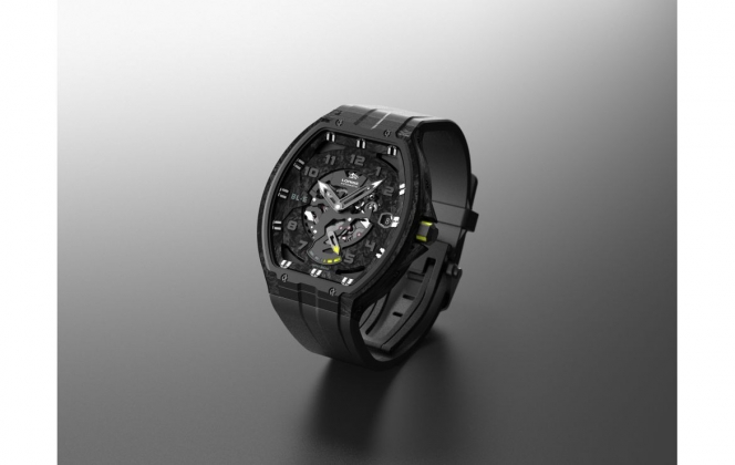 Tal como o novo Hypercar da marca francesa, o Lorige BL-Endurance Hyperblack parece estar ainda na sua fase de testes, despido de qualquer decoração, como os protótipos de pista. O relógio expõe a ‘carroçaria’ preta em carbono e titânio revestido com DLC, dando-lhe um visual assertivo e sem adornos supérfluos. Do bisel em titânio de grau 5 aos parafusos visíveis personalizados, todas as peças foram escurecidas para produzir o efeito monocromático desejado. O tema ‘negro total’ é reforçado com pormenores em cinza selênio para combinar com a identidade visual da Peugeot Sport.