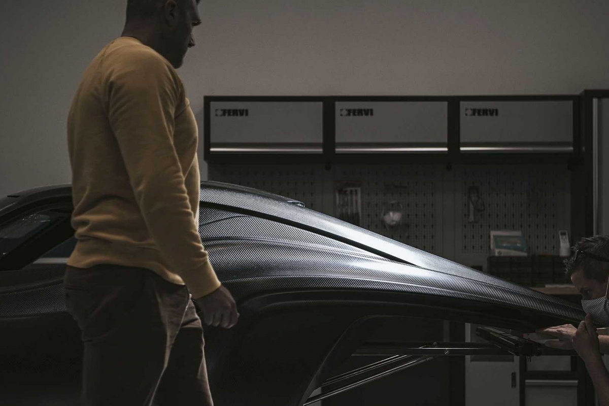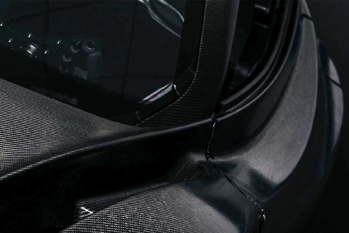 As primeiras ‘pinceladas’ do modelo que utiliza, alegadamente, o maior painel em fibra de carbono alguma vez usado num carro, com cerca de 3,2 metros de comprimento, foram relevadas numa série de imagens ‘teaser’ que desvendam as linhas fundamentais do design. O formato coupé, os arcos das rodas e difusor de dimensões avantajados, uma dupla ponteira de escape e tejadilho curto ‘rasgado’ por uma grande entrada de ar favorecem a estética típica de supercarro com pretensões ao estatuto de máquina exclusiva, com aposta em fórmula de sucesso: potência e baixo peso. A fibra de carbono é material também usado no subchassis traseiro, com tecnologia importada das corridas de resistência da categoria LMP2, permitindo um peso total a rondar os 900 kg. A relação peso/potência é de fantásticos 1,5 kg/CV.