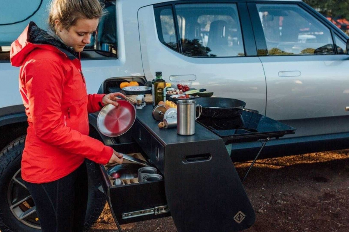 Mas há outros de cariz mais funcional, como a tenda para três pessoas insuflável na caixa da pick-up, Camp Kitchen, que não é mais do que uma cozinha totalmente equipada pensado para o campismo ou para profissionais que trabalham ao ar livre, na natureza.