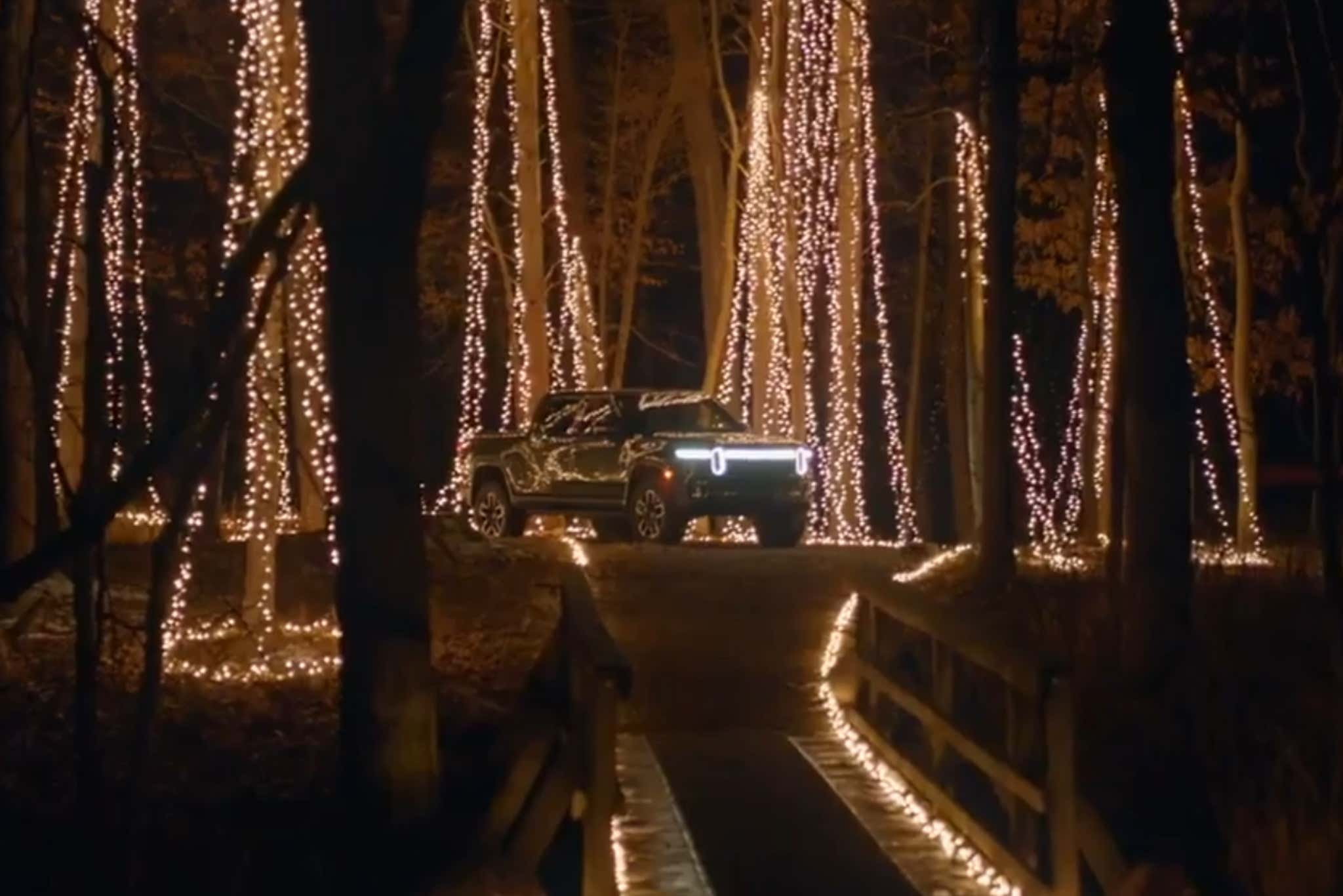 Assim, a mensagem de boas festas da Rivian este ano fez-se acompanhar de um vídeo onde pode ver-se a poderosa R1T a ‘iluminar’ 20 mil luzes de Natal no meio de uma floresta.