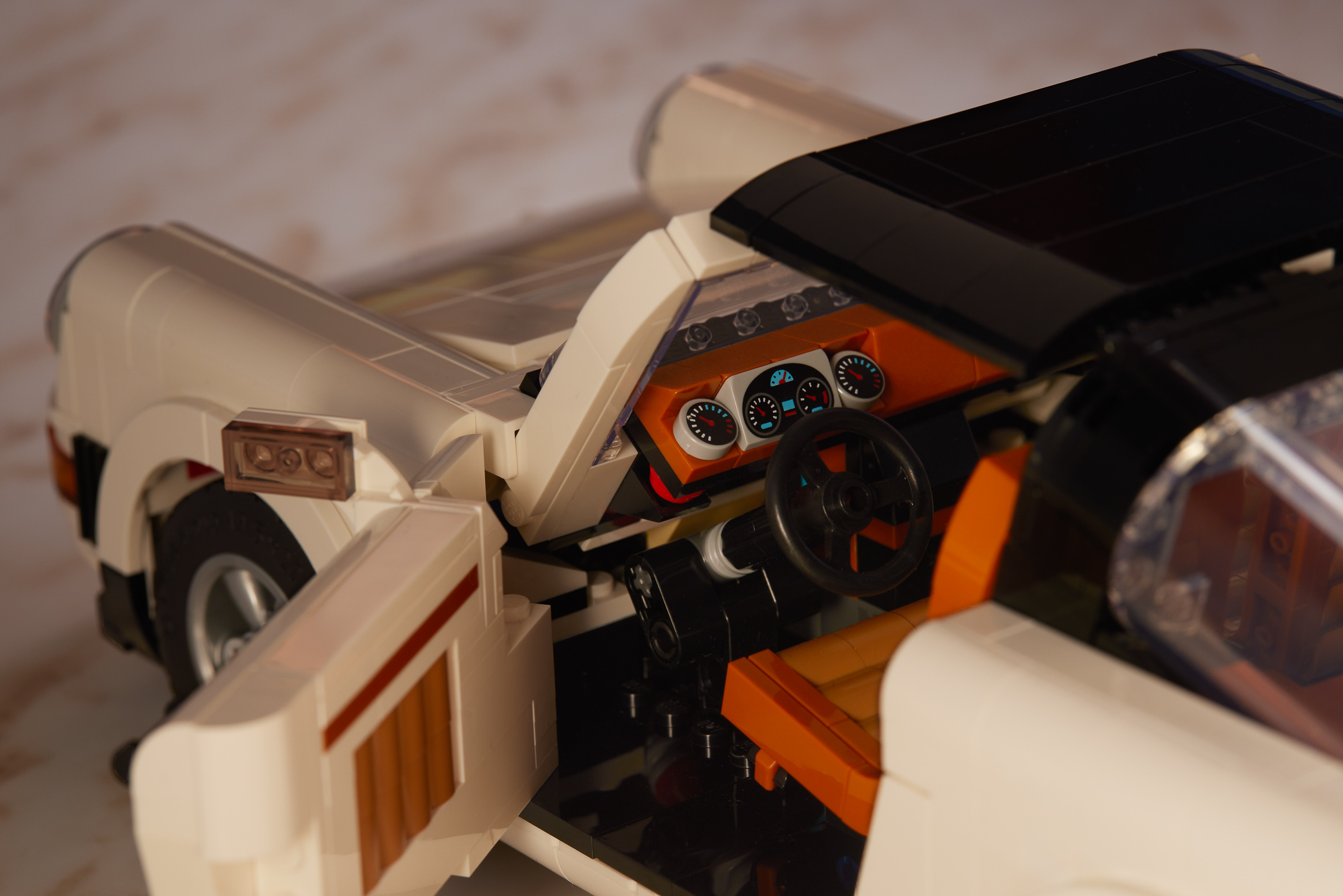 O conjunto é composto por um total de 1458 peças, que vão dar origem à réplica com 35,5cm de comprimento, 10,8 cm de altura e 16cm de largura. Basta escolher a configuração ‘fechada’ ou descapotável, trocarem algumas peças na secção traseira e no tejadilho.