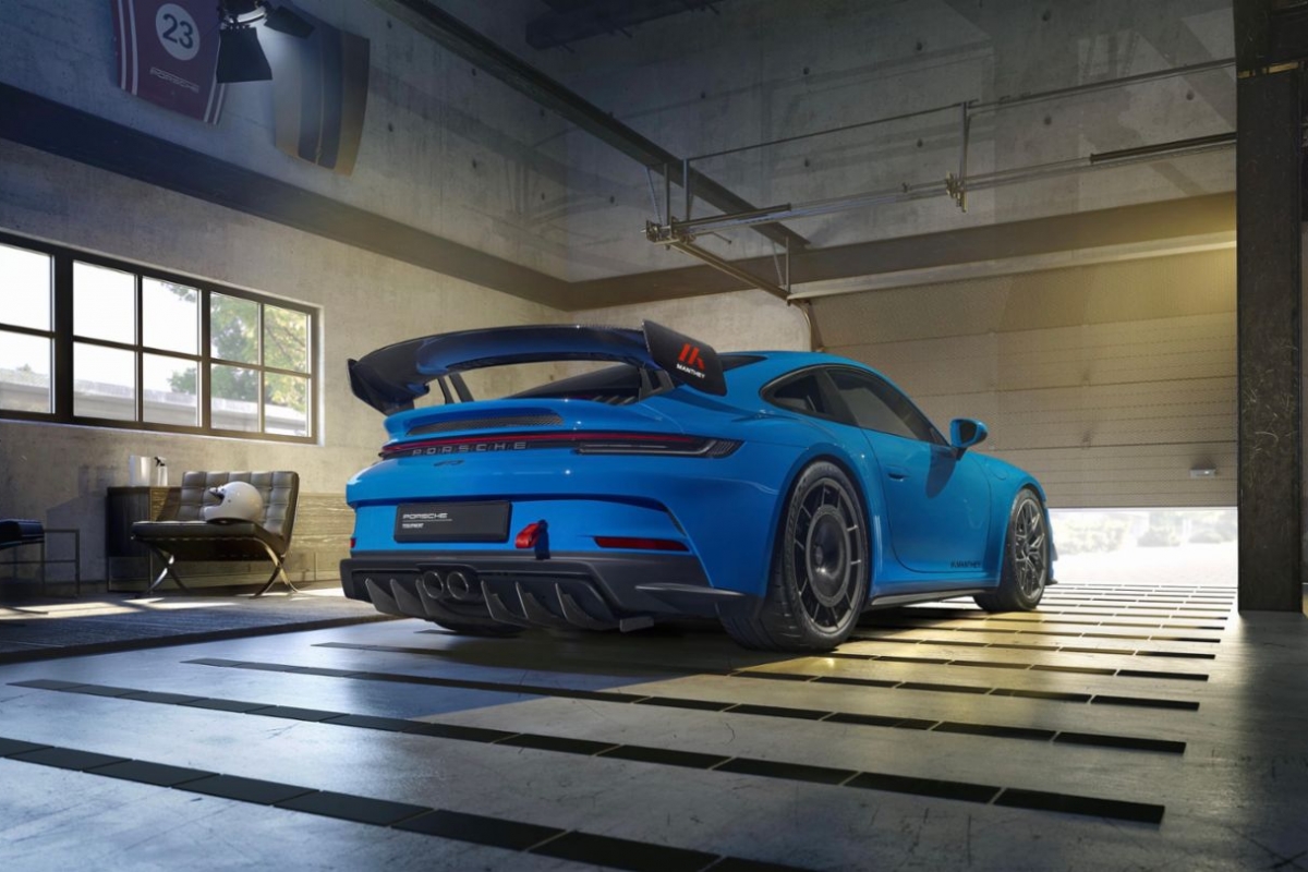 Mantendo os 510 cv do motor 6 cilindros boxer de 4 litros de capacidade, o Manthey Performance Kit (disponível no outono, por preço a rondar os 45 mil euros), inclui uma série de alterações: para-choques com spoilers específicos, para otimização da aerodinâmica e superior downforce no eixo dianteiro, uma nova asa de dimensões ainda mais avantajadas e novo difusor em material compósito para colar o eixo traseiro (motriz) ao asfalto.