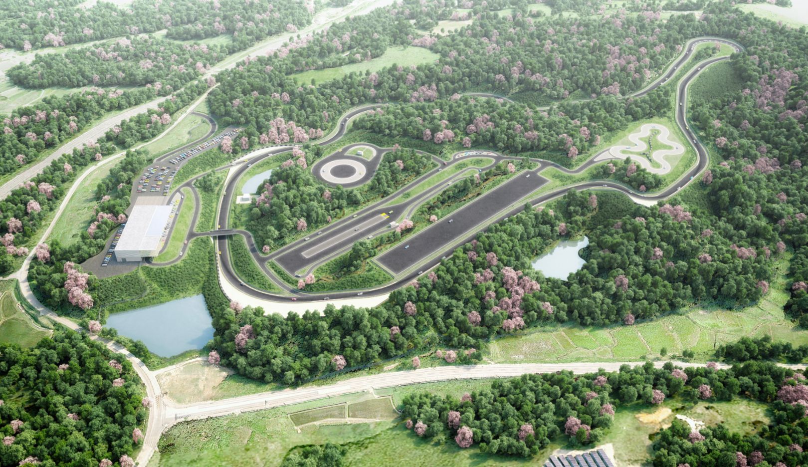 A Porsche revelou que a pista curta reproduzirá curvas famosas de vários circuitos em todo o Mundo, incluindo o mítico “carrossel” de Nürburgring e o não menos emblemático Corkscrew, o “saca-rolhas” de Laguna Seca.