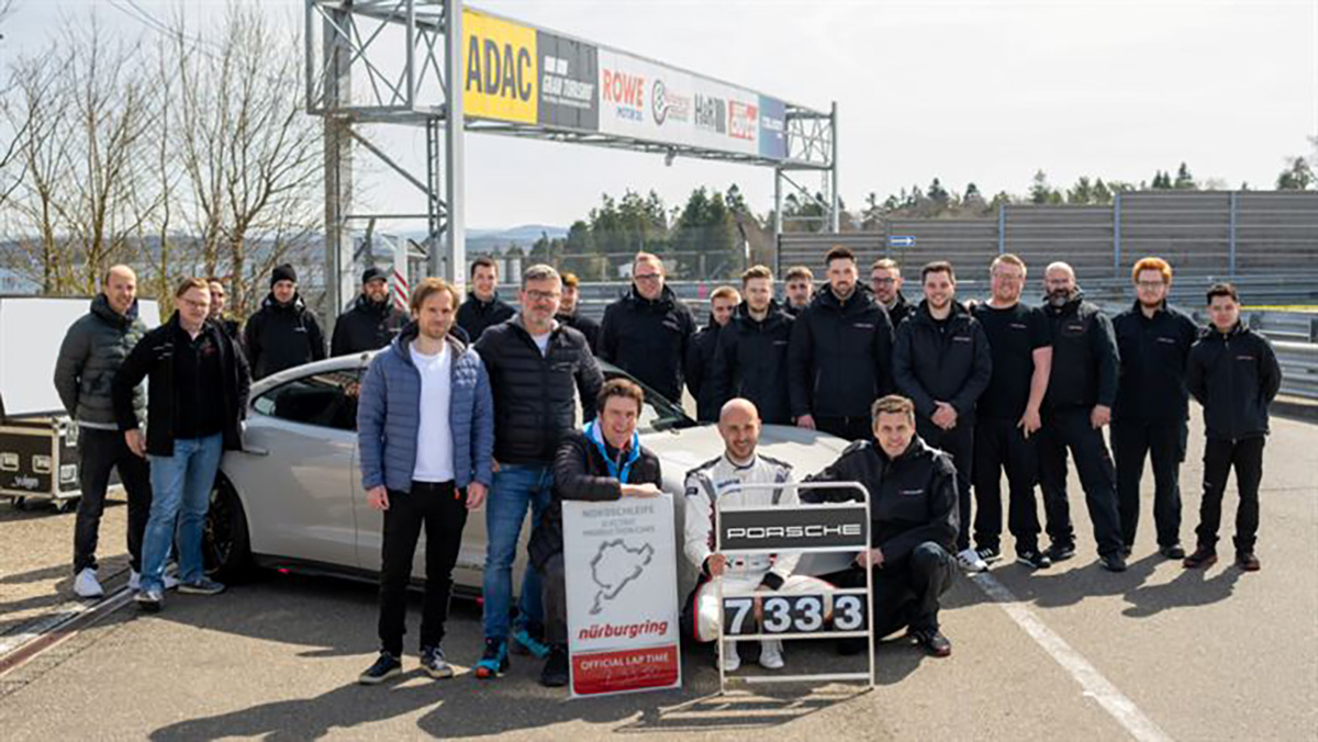 Com Lars Kern ao volante (piloto da casa, ligado ao desenvolvimento de modelos da Porsche), uma unidade de série do Porsche Taycan Turbo S equipada com o novo Kit Performance e o chassis PDCC (Porsche Dynamic Chassis Control), percorreu os 20,8 km do circuito em 7 minutos e trinta e três segundos, feito nunca antes alcançado por um veículo elétrico.
