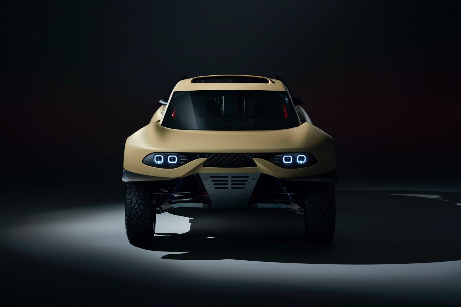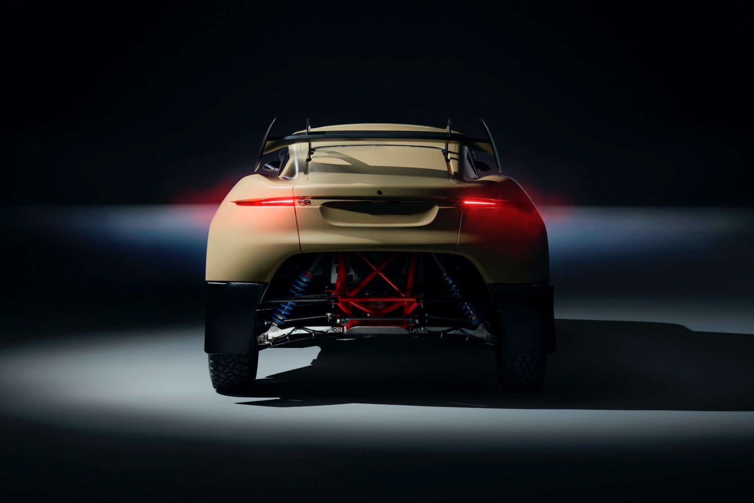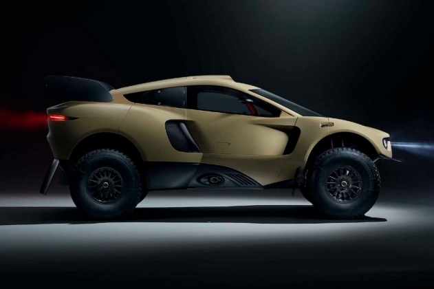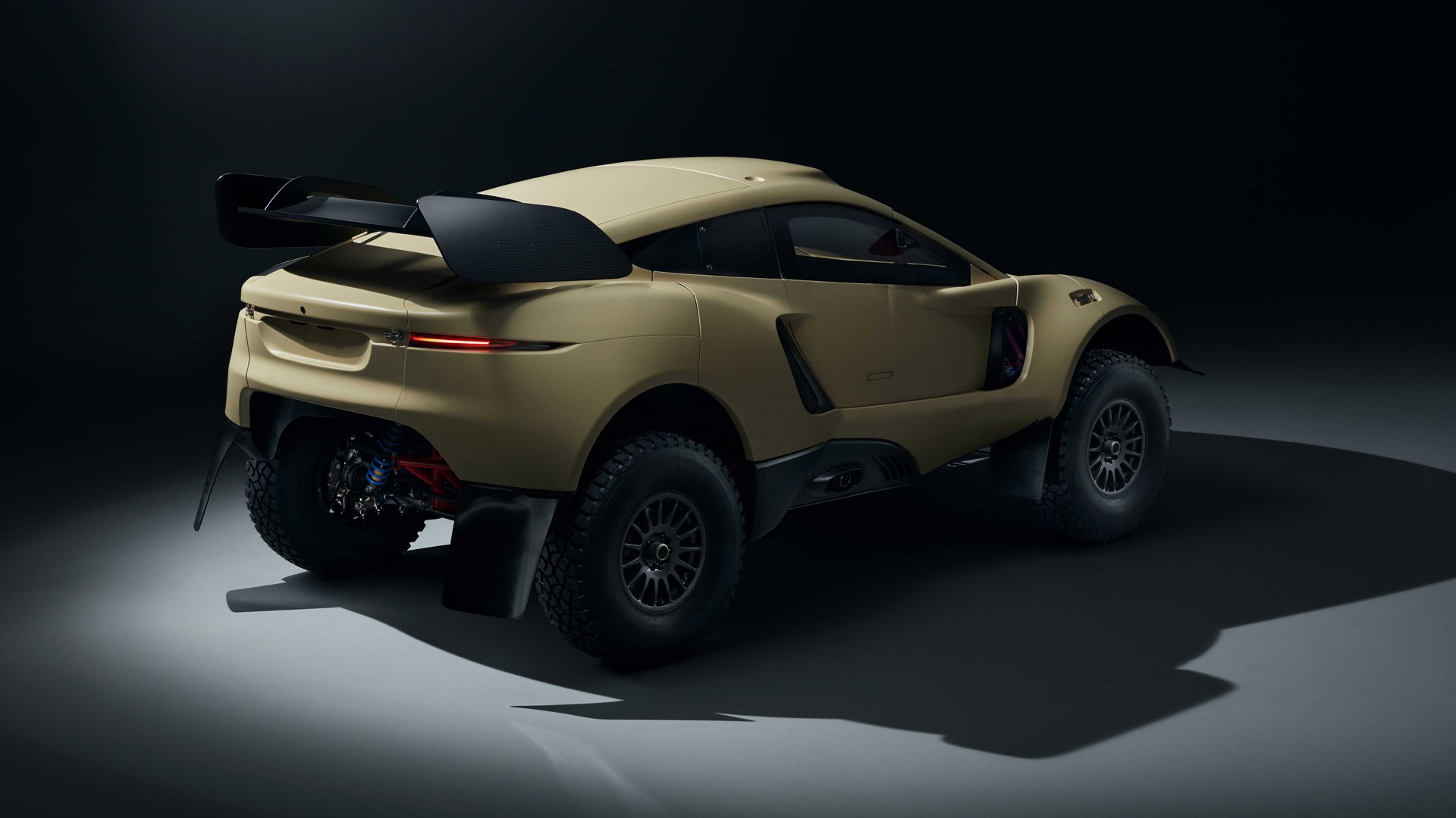 Desenhada por Ian Callum (o antigo designer da Jaguar também foi autor do carro do Dakar), a estilizada carroçaria está produzida em fibra de carbono, sobre um chassis “spaceframe” reforçado com aço de alta resistência e otimizado para estrada. A suspensão de triângulos sobrepostos monta amortecedores duplos ajustáveis em cada uma das rodas que permitem um curso de 400 mm (mais 50 mm que o Hunter de competição). Os pneus são de todo-o-terreno com 35 polegadas.