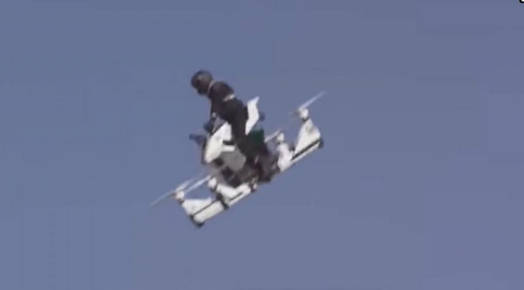 Desde 2017 que os russos da Hoversurf e as forças policiais do Dubai trabalham numa moto voadora para acrescentar aos veículos de patrulha naquela cidade dos Emirados Árabes Unidos. O modelo mais recente, o Scorpion 3, está desde então em testes, com formação para candidatos a pilotos deste tipo de máquinas, pensadas para entrar em áreas de difícil acesso para automóveis, perseguir criminosos e patrulhar áreas visitadas normalmente por turistas.
