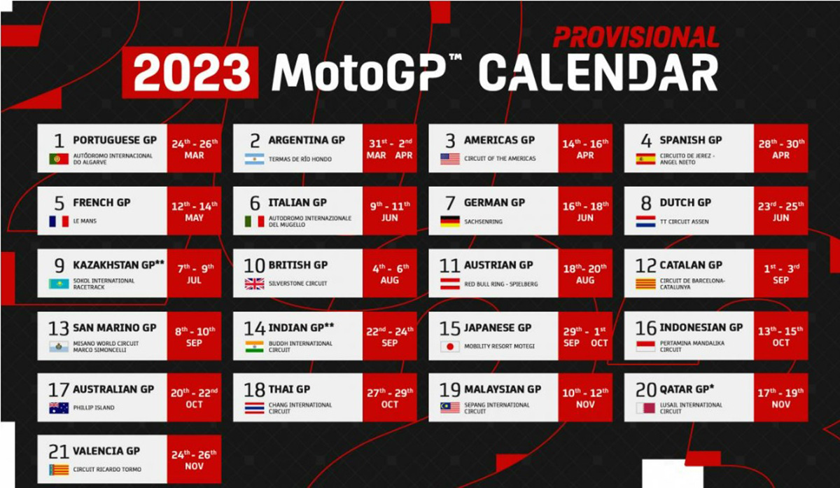 Espanha tem um lugar muito especial no Moto GP e não é à toa que fecha a temporada e, tudo aponta, que o mesmo vai acontecer em 2023. Por outro lado, é o único país que vai ter 3 provas em 2023! Sim, são mesmo 3 as provas previstas!