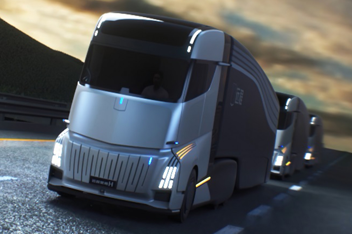 Design futurista, inteligência artificial (IA), nível 4 de condução autónoma e recargas rápidas com sistema de baterias extraíveis: o Homtruck vai rivalizar com o camião elétrico da Tesla em 2024.