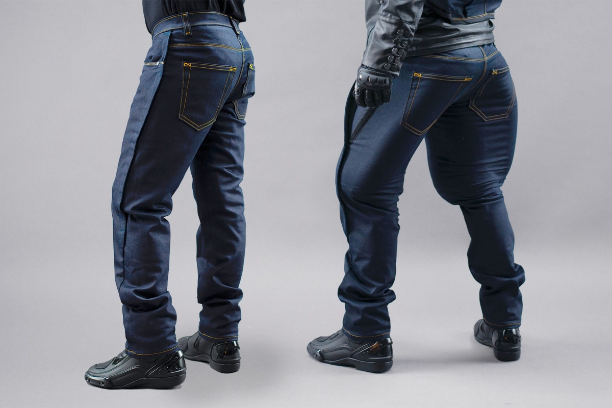 Mais eficazes e práticas do que as sobrecalças com proteções para motociclistas, o sistema da Mo’cycle combina com as escolhas práticas de todos os dias, ao incorporar nas tradicionais calças de ganga um conjunto de airbags que se ativam em caso de acidente, sem nenhum tipo de dispositivo eletrónico.