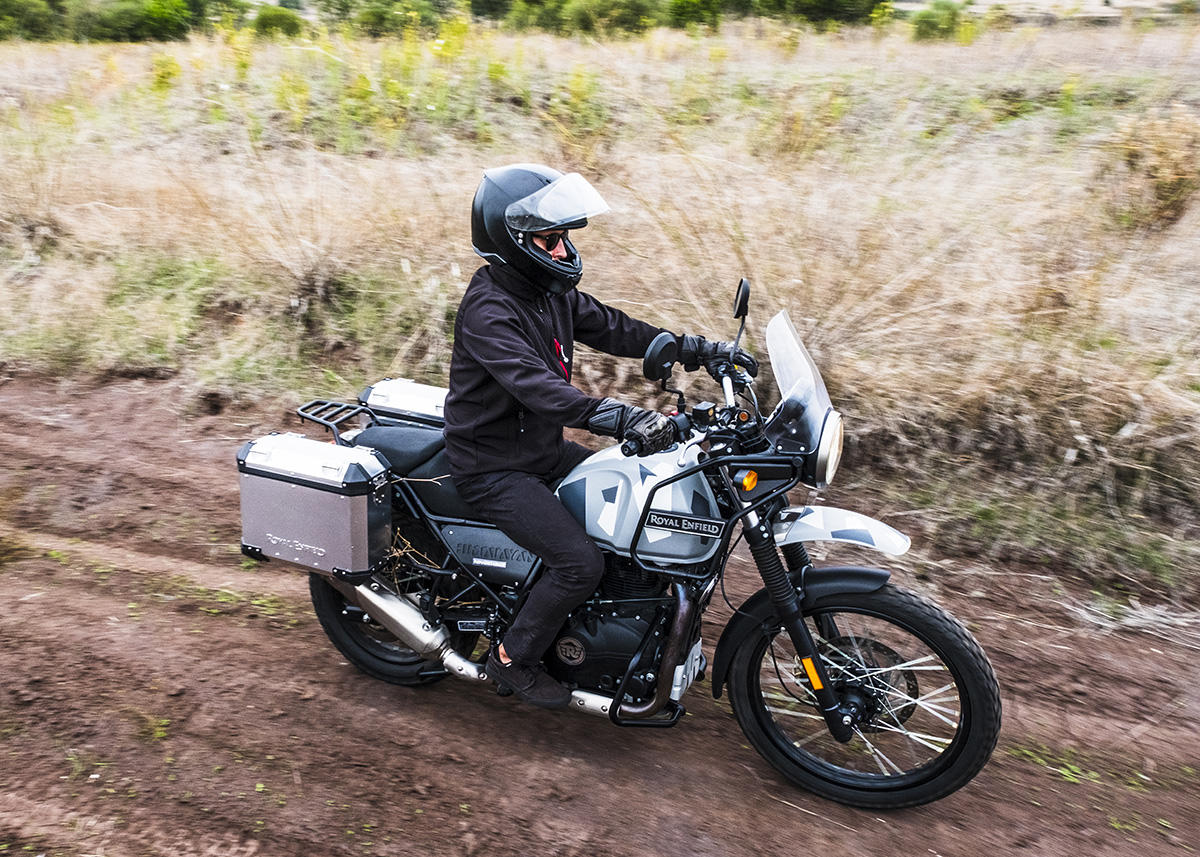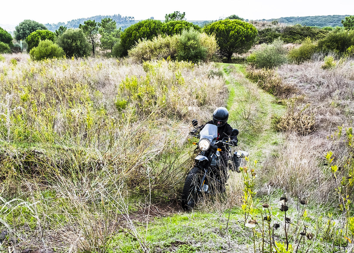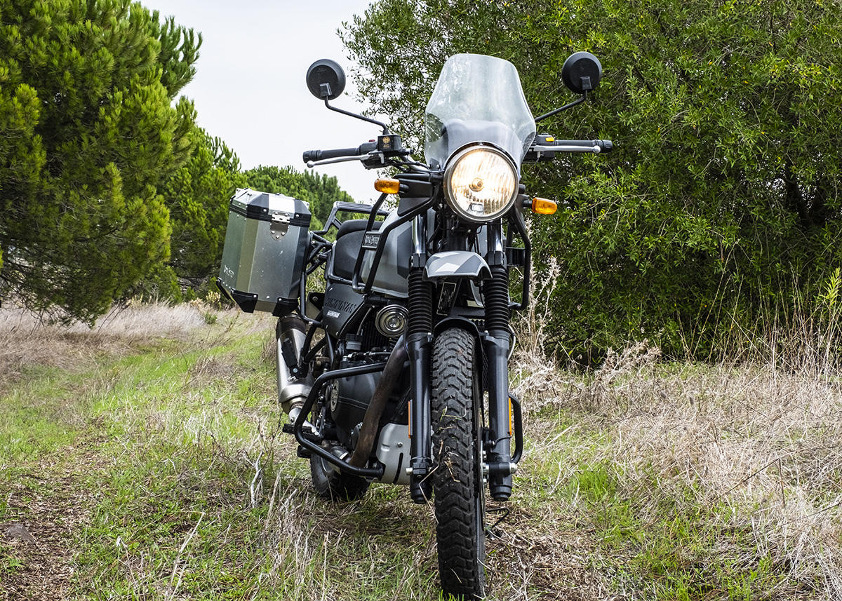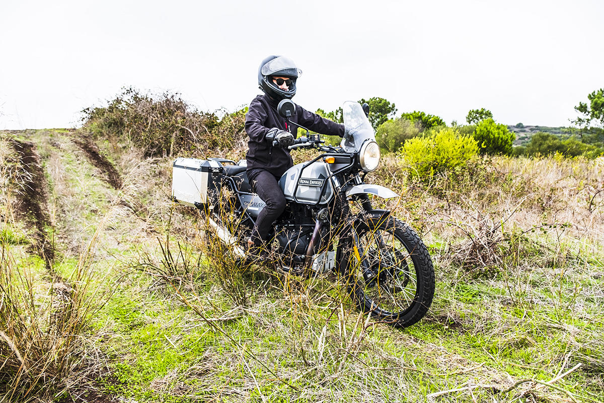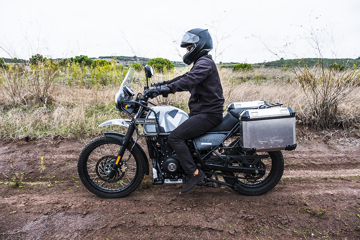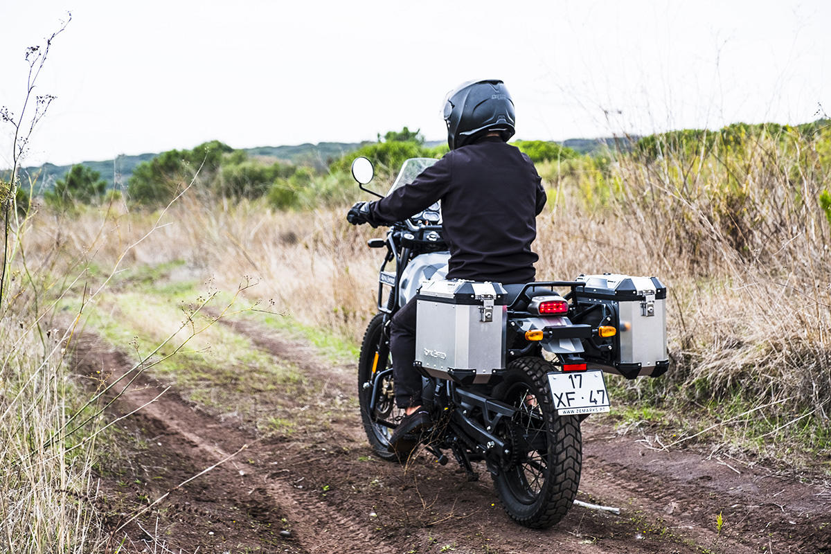 A marca apresenta a Himalayan como tendo sido concebida para se atravessar os Himalaias, a maior cordilheira do mundo. Não fomos tão longe, mas conseguimos perceber que a moto se sente bem por caminhos esburacados, proporcionando muita suavidade nas irregularidades do piso ou em subir pequenos obstáculos. Parte boa: não existe tecnologia nem eletrónica para avariar, apenas um painel de instrumentos básico, sem botões nem luxos – apenas uma bússola! Também as carenagens aqui não fazem falta, mas sim o reforço lateral para servir de proteção em caso de queda.