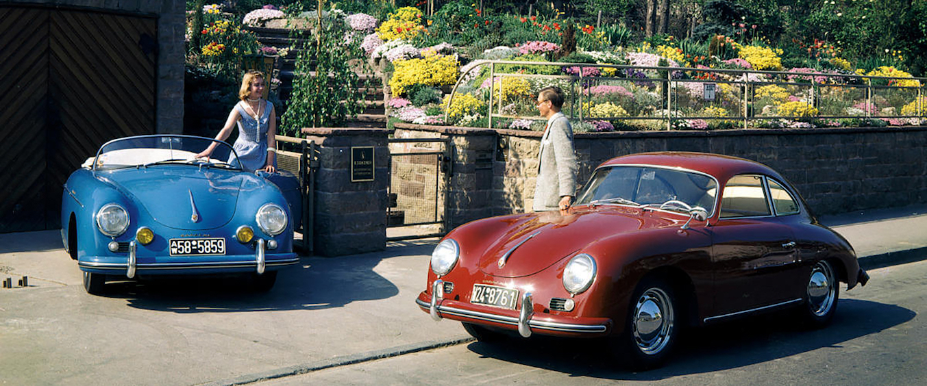 O desenvolvimento normal da empresa, por si fundada em 1931, foi impedido com o eclodir da Segunda Guerra Mundial em 1938 e isto levaria Ferdinand Porsche a colaborar no esforço de guerra. Por essa mesma razão, 1948 é a data que a marca assume como o início da sua história, marcada pelo lançamento do seu primeiro veículo desportivo – o 356 – já pelas mãos do seu filho, Ferry Porsche.