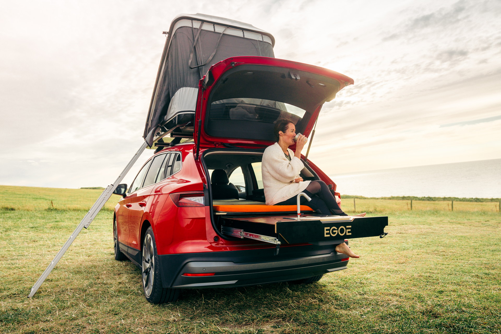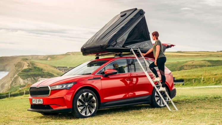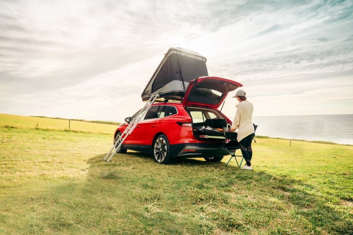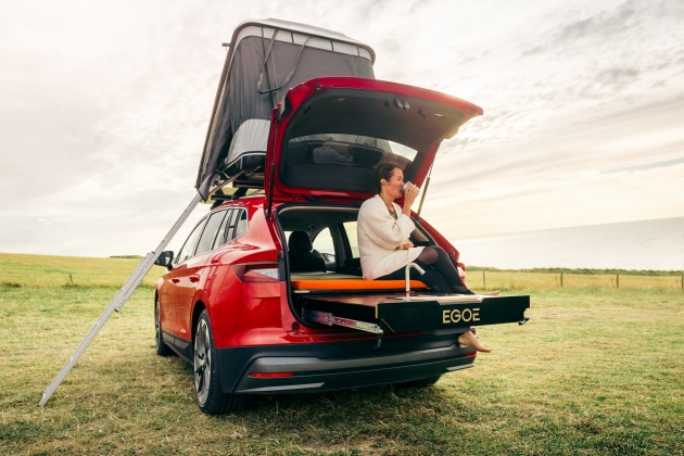 Ainda assim, o destaque vai para o módulo de campismo configurado à medida da mala do Skoda Enyaq (585 litros), numa plataforma deslizante com fogão a gás, lavatório e arrumação.