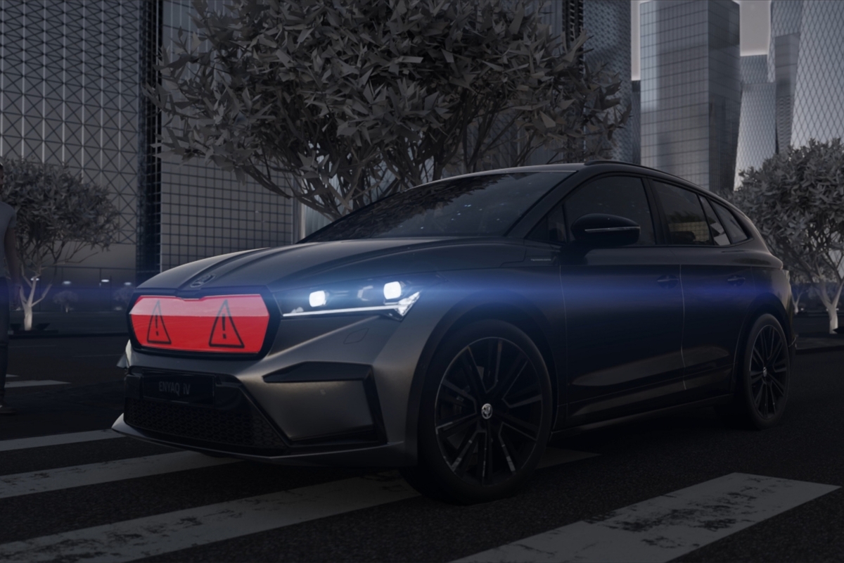 A Skoda está a colaborar com especialistas do Instituto de Informática, Robótica e Cibernética da Universidade Técnica de Praga (CIIRC) e da Universidade Técnica de Munique no desenvolvimento de uma grelha dianteira que tem a função de avisar os peões para algum tipo de perigo quando atravessam a estrada.