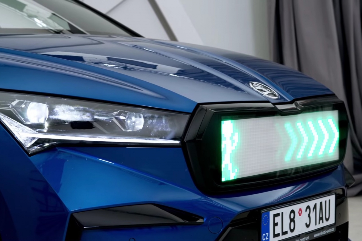 O objetivo é ajudar a travar o número de mortes por atropelamento, através de um novo método de sinalização na própria dianteira dos carros. A tecnologia já em teste no Enyaq iV integra umas tiras de LED que são controladas de forma independente para criar animações de acordo com as necessidades do momento, seja urgente parar ou apenas para garantir que o peão pode avançar livremente.