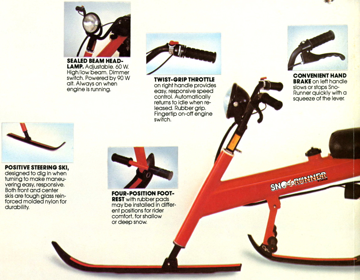 Apesar do seu aspecto frágil, o Sno-Runner é capaz de chegar a velocidades de 25 mph, cerca de 40 km/h, possível através do motor Power Bee a dois tempos e arrefecido a ar de um cilindro Chrysler Marine de 134cc de cilindrada. Era ainda possível equipar o Sno-Runner com alguns componentes para melhorar as performances, como um escape de rendimento, uma junta da cabeça mais fina e uma roda dentada da embraiagem centrífuga de 15 dentes.