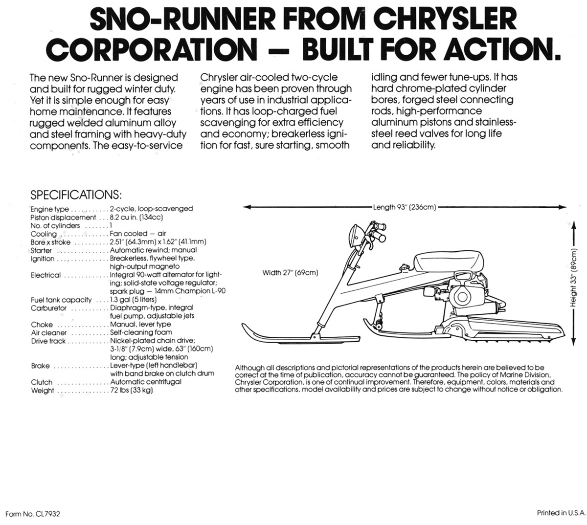 O objectivo do Sno-Runner era salvar a marca da falência e produzir um veículo mais barato e acessível para quem procurasse se divertir na época da neve. No entanto, foi um fracasso para a Chrysler, não vendendo números suficientes de exemplares para ser rentável, muito por culpa do seu alto preço, estando em produção apenas de 1979 a 1980.