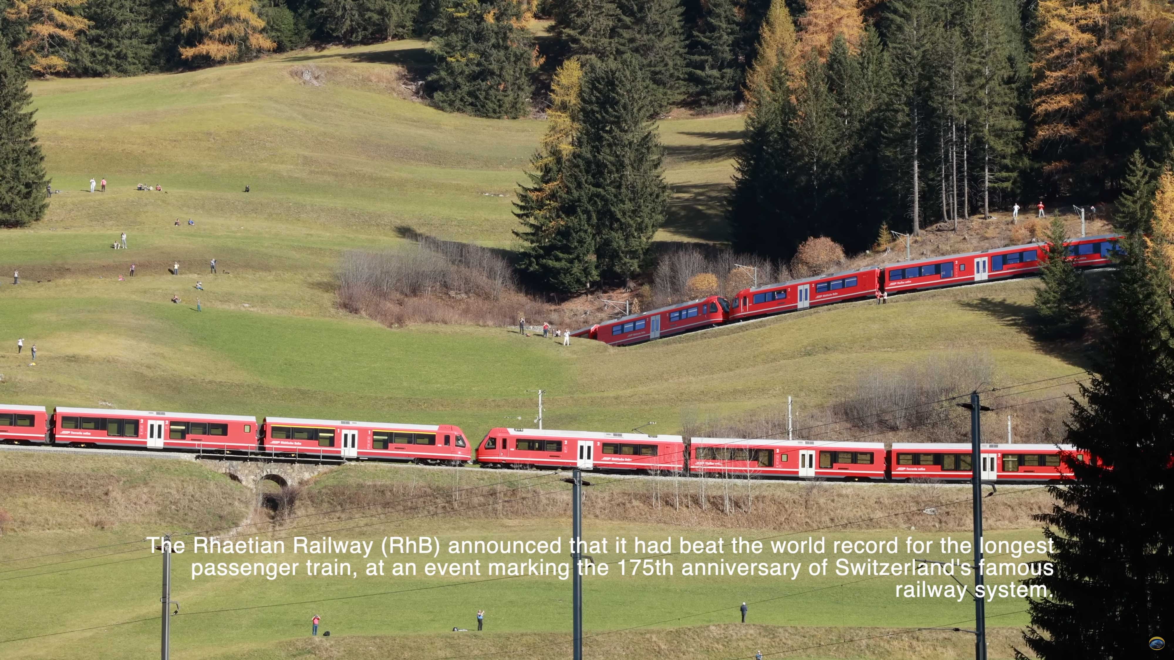 A viagem para validar o recorde conseguido em outubro do ano passado, teve uma duração de pouco mais de 1 hora, e foi feita à velocidade de cerca de 35 km/h, numa rota reconhecida pela UNESCO como pratimónio mundial entre o túnel de Albula, e o viaduto de Landwasser, tendo juntado a proeza de atravessar 48 pontes e 22 túneis pelo caminho.
