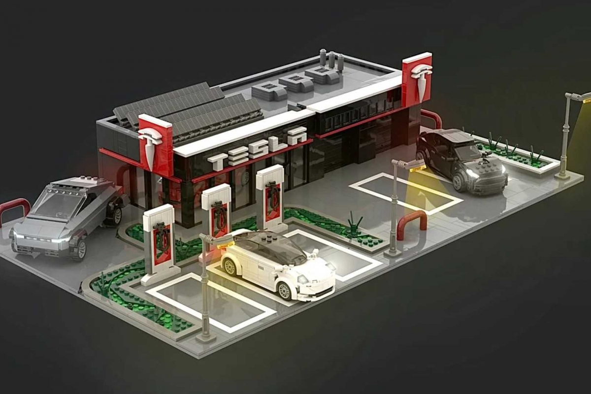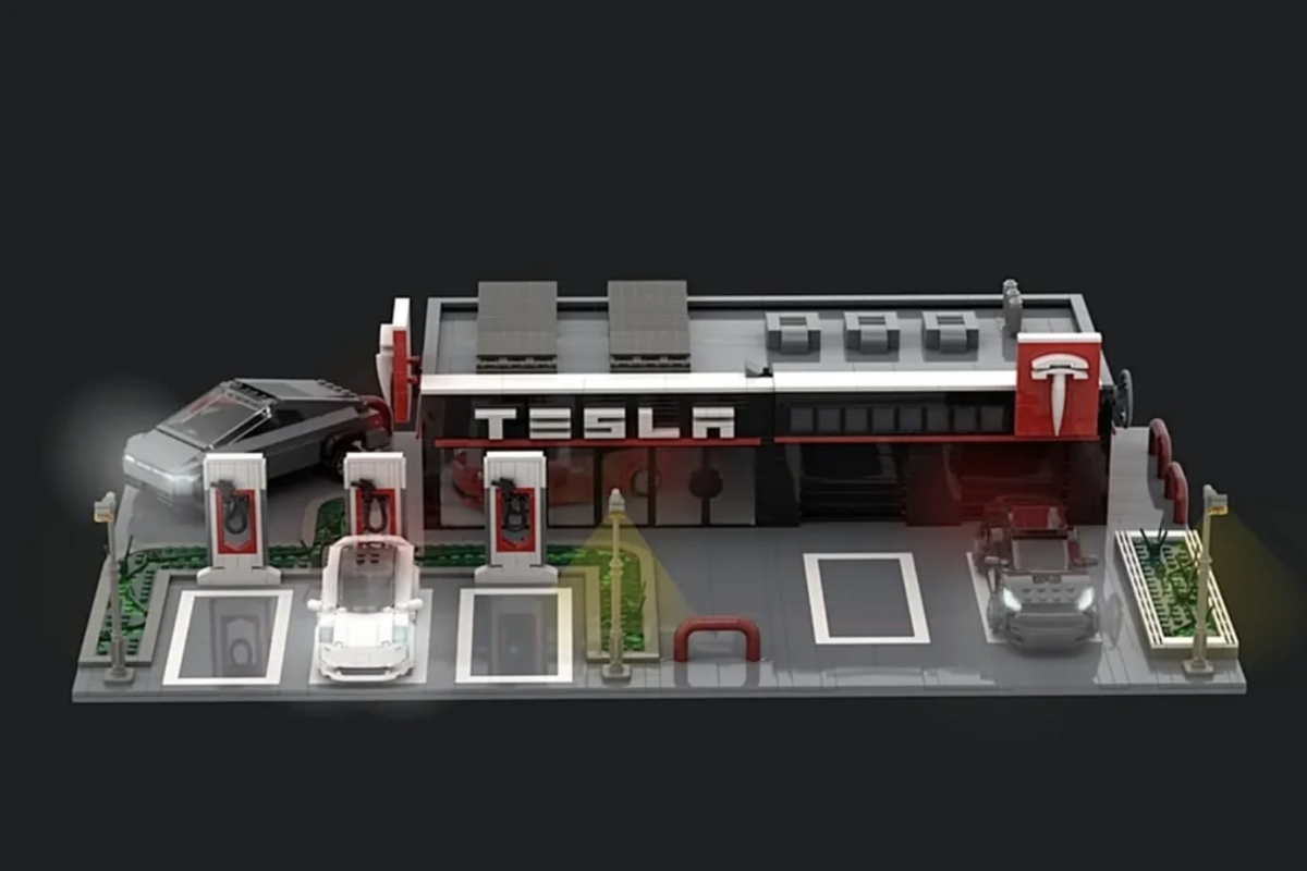 Miniatura de uma estação de supercarregadores da Tesla precisa de dez mil votos para chegar ao catálogo da Lego.